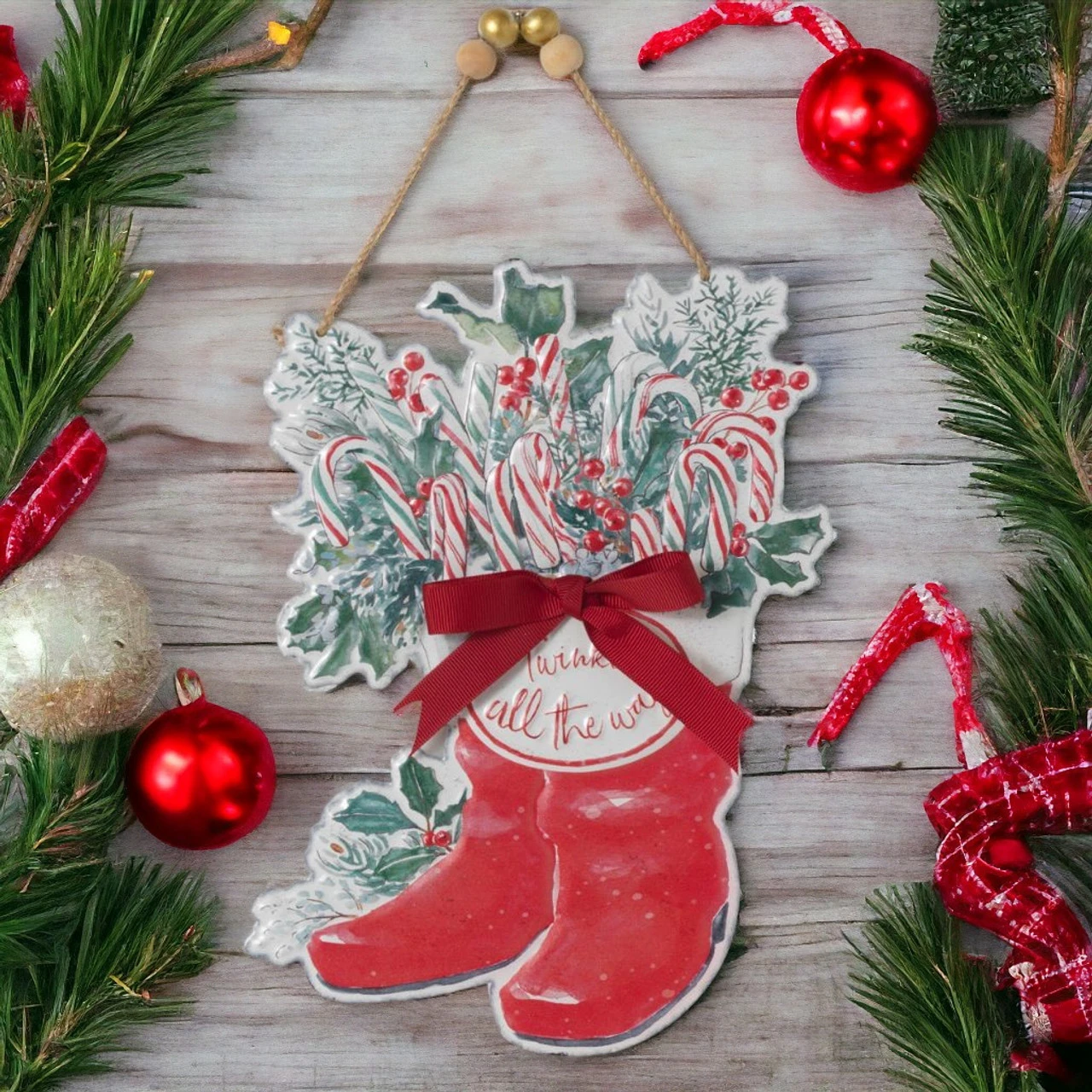 These aren’t just boots; they’re Santa’s favorite pair, bringing joy, candy canes, and a sprinkle of Christmas magic straight to your wall.