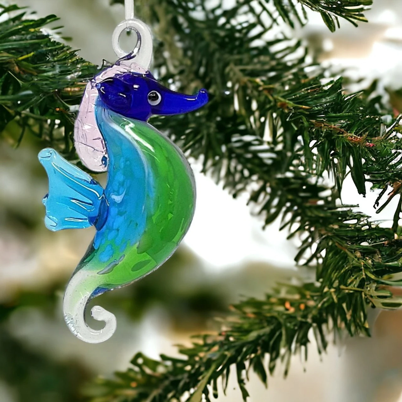 Add a touch of oceanic magic to your holiday decor with the Blue Fin Seahorse Ornament. This beautifully crafted ornament features a vibrant blue seahorse with intricate details and bright colors.