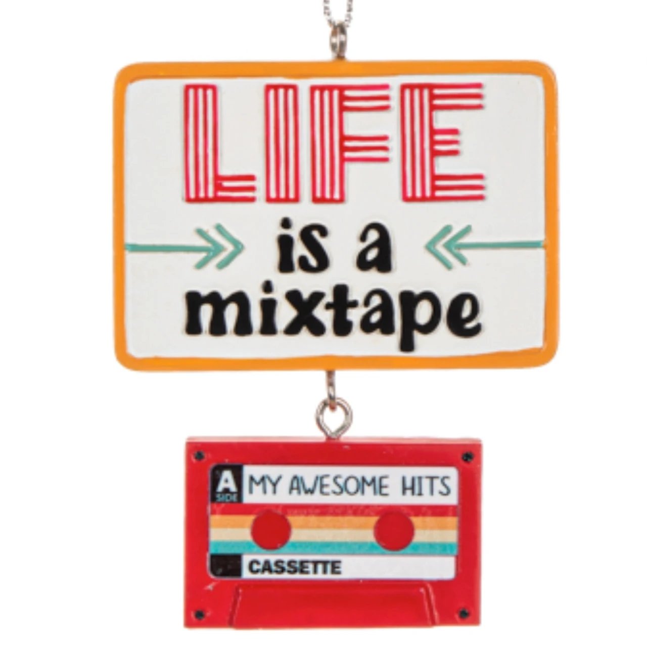Introducing our 2-inch Cassette Ornament! This nostalgic ornament features a cassette with the sentiment “Life Is A Mixtape” and hangs from a brown string. Relive the joy of creating personalized music playlists with this charming ornament. Perfect for music lovers and those who appreciate the beauty of nostalgia. Hang it on your Christmas tree, wall, or anywhere you desire to add a touch of vintage flair. Crafted with attention to detail, this ornament is a unique and thoughtful gift. Celebrate the magic of music and the memories it holds with our Cassette Ornament.