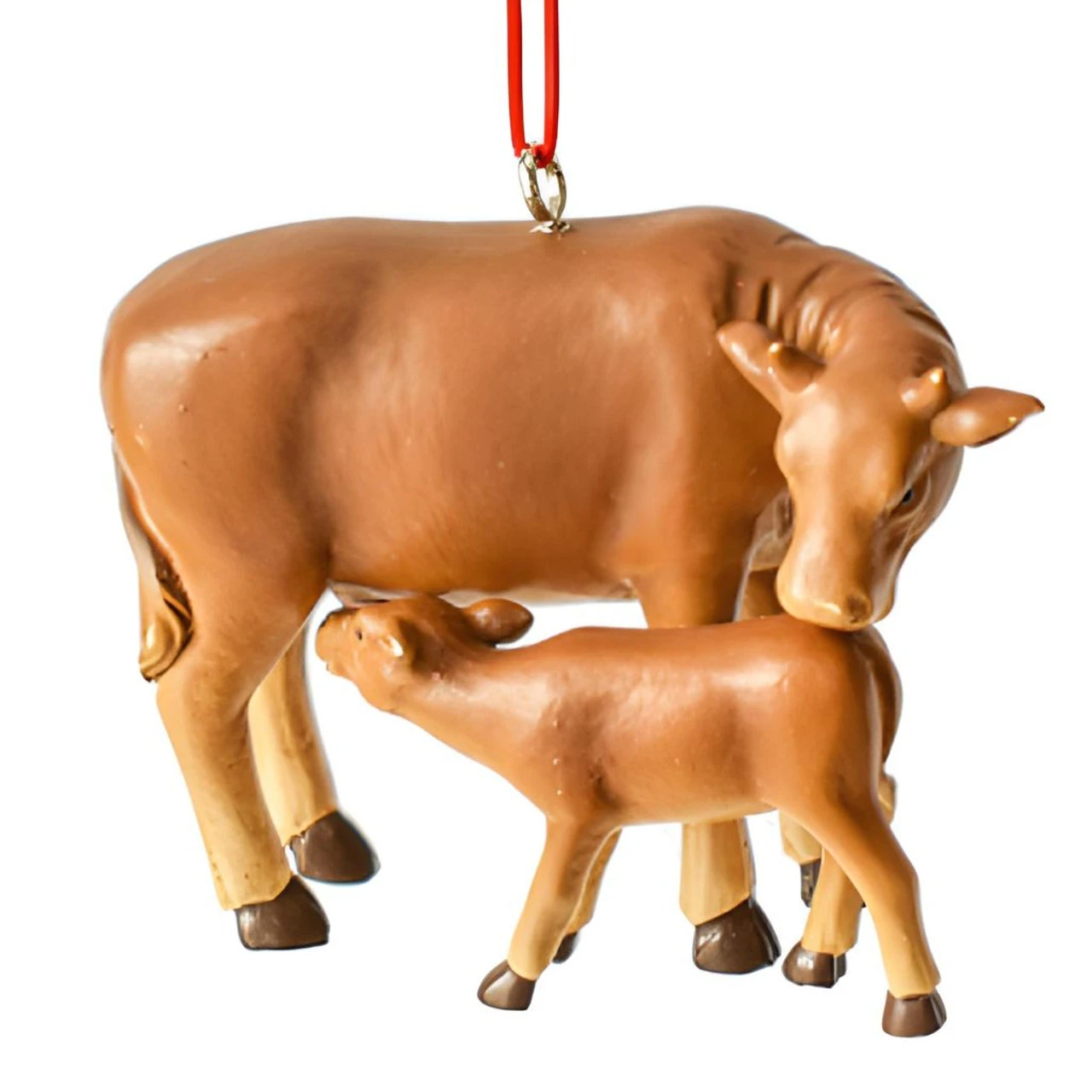 Discover the warmth of farm life with our Cow and Calf Christmas Ornament. This beautiful ornament features a nurturing cow tenderly caring for her calf, both rendered in rich, realistic colors.