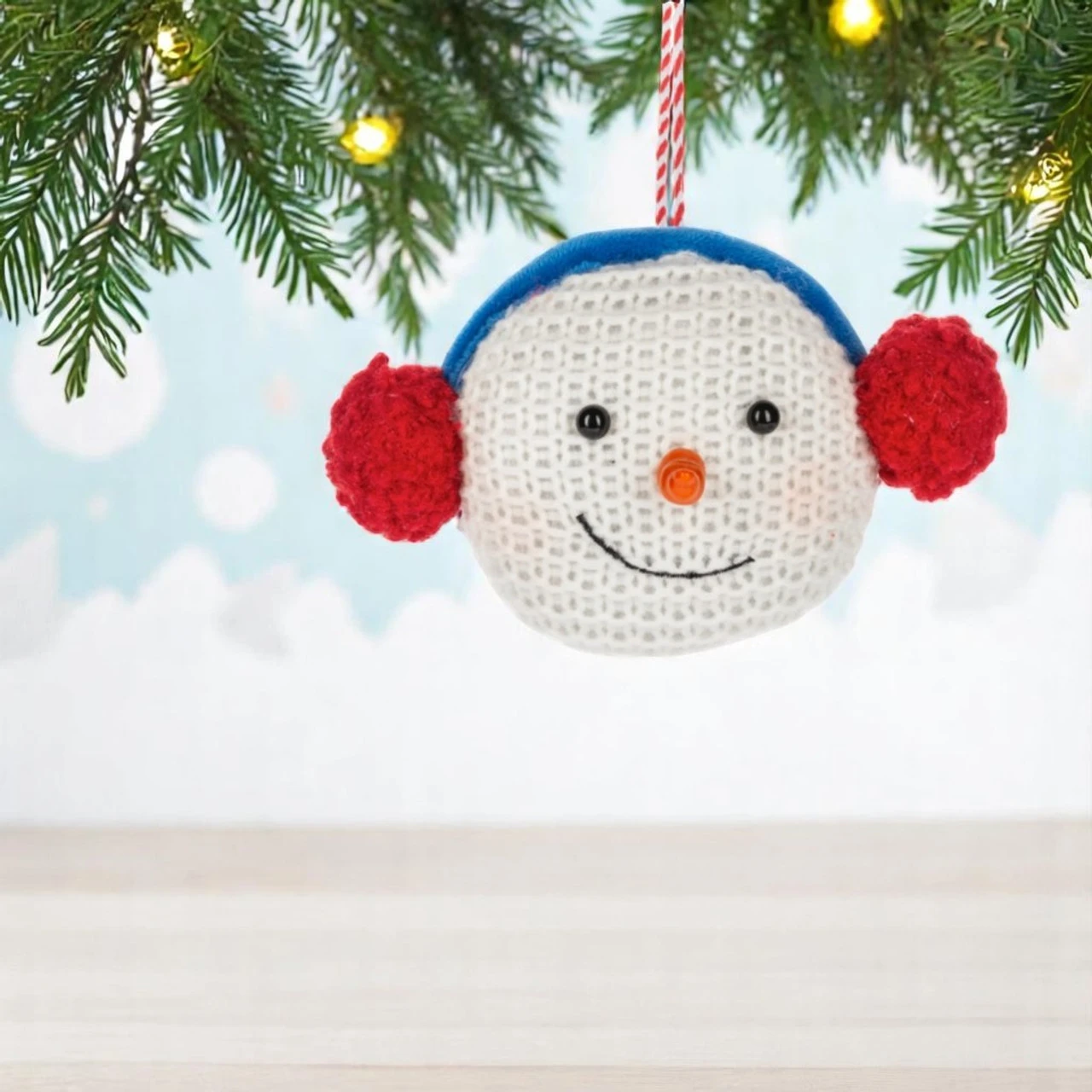 Bundle up your tree with the cozy charm of this Crochet Snowman With Ear Muffs Ornament! Featuring a cheerful crocheted face, carrot nose, and bright red pom-pom ear muffs, this snowman brings a pop of personality and warmth to your holiday décor.