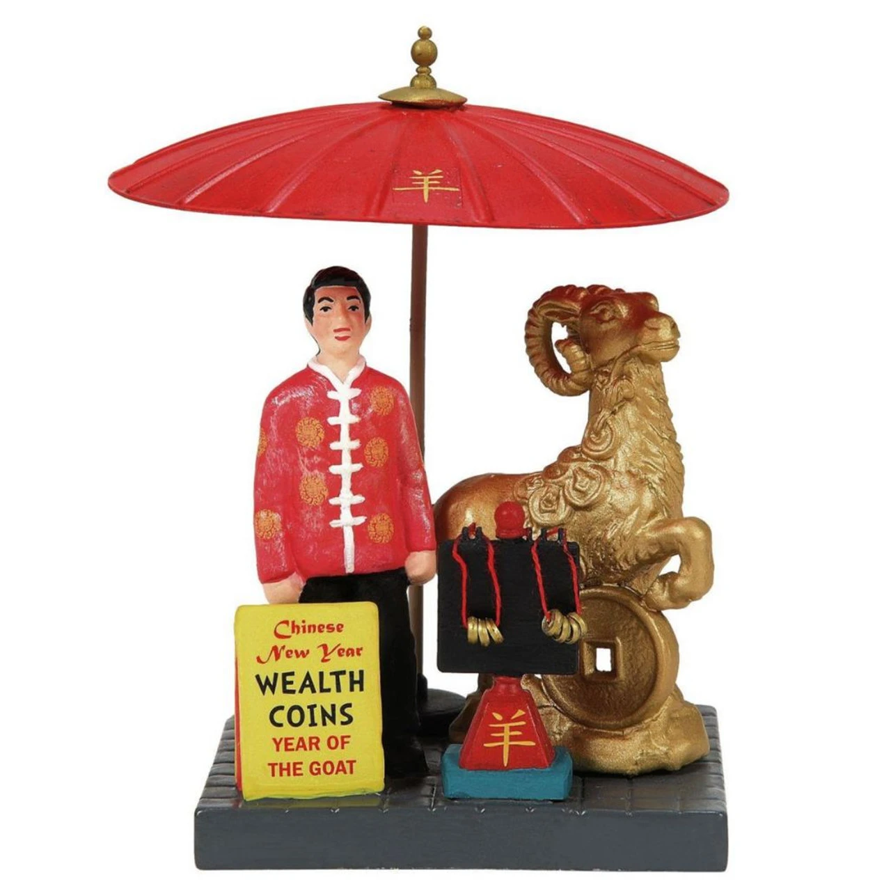 Celebrate the Chinese New Year with Luck Necklaces Are The Goat from Department 56’s Christmas In The City collection. This vibrant figurine features a golden goat statue, a striking red umbrella, and festive wealth coin necklaces to mark the Year of the Goat.