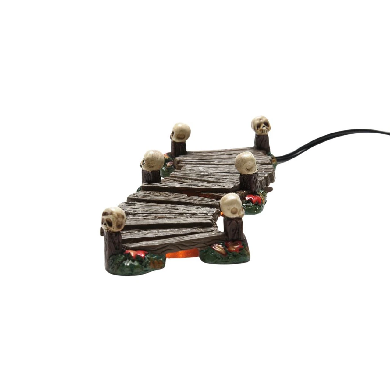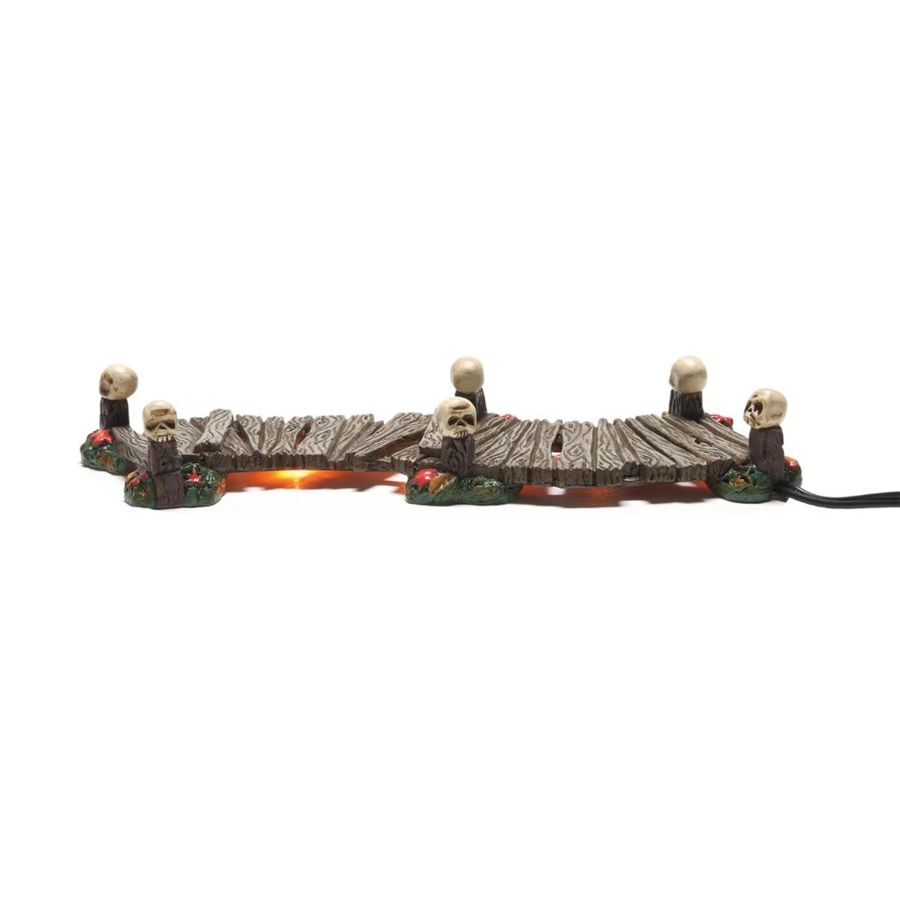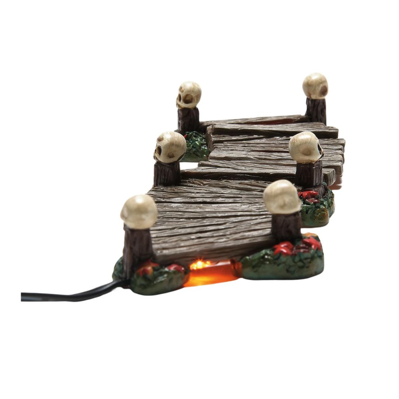 Venture if you dare onto the Haunted Boardwalk, a thrilling piece from the Village Cross Product Halloween collection, introduced in October 2023. This treacherous boardwalk teeters on the edge of danger, with rotted boards ready to crack and plunge the unwary into the fiery depths below.