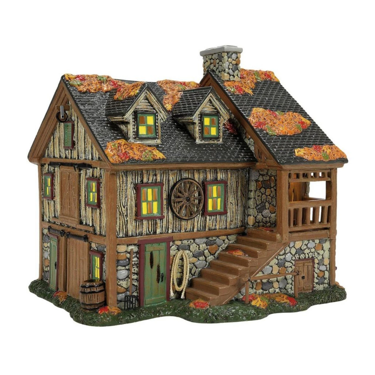 Capture the rustic charm of Halloween with the Department 56 Sleepy Hollow Stables. This intricately detailed piece features a cozy stable with glowing windows, autumn leaves scattered on the roof, and realistic textures of wood and stone.