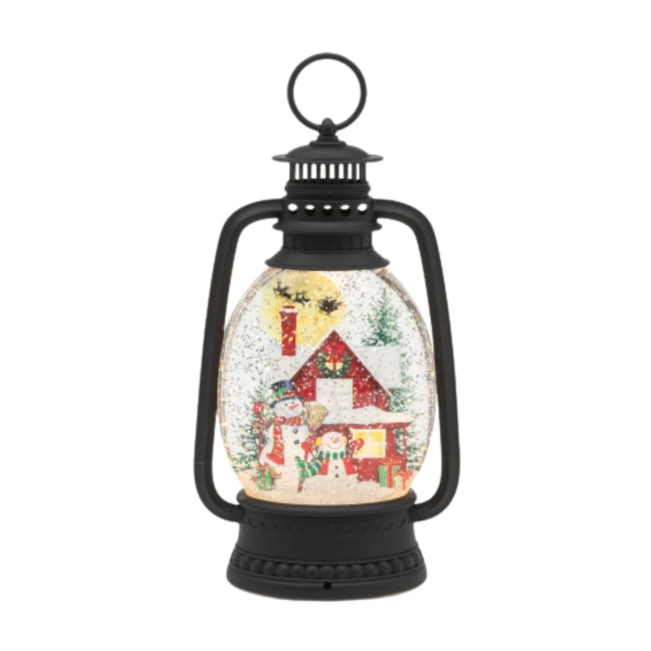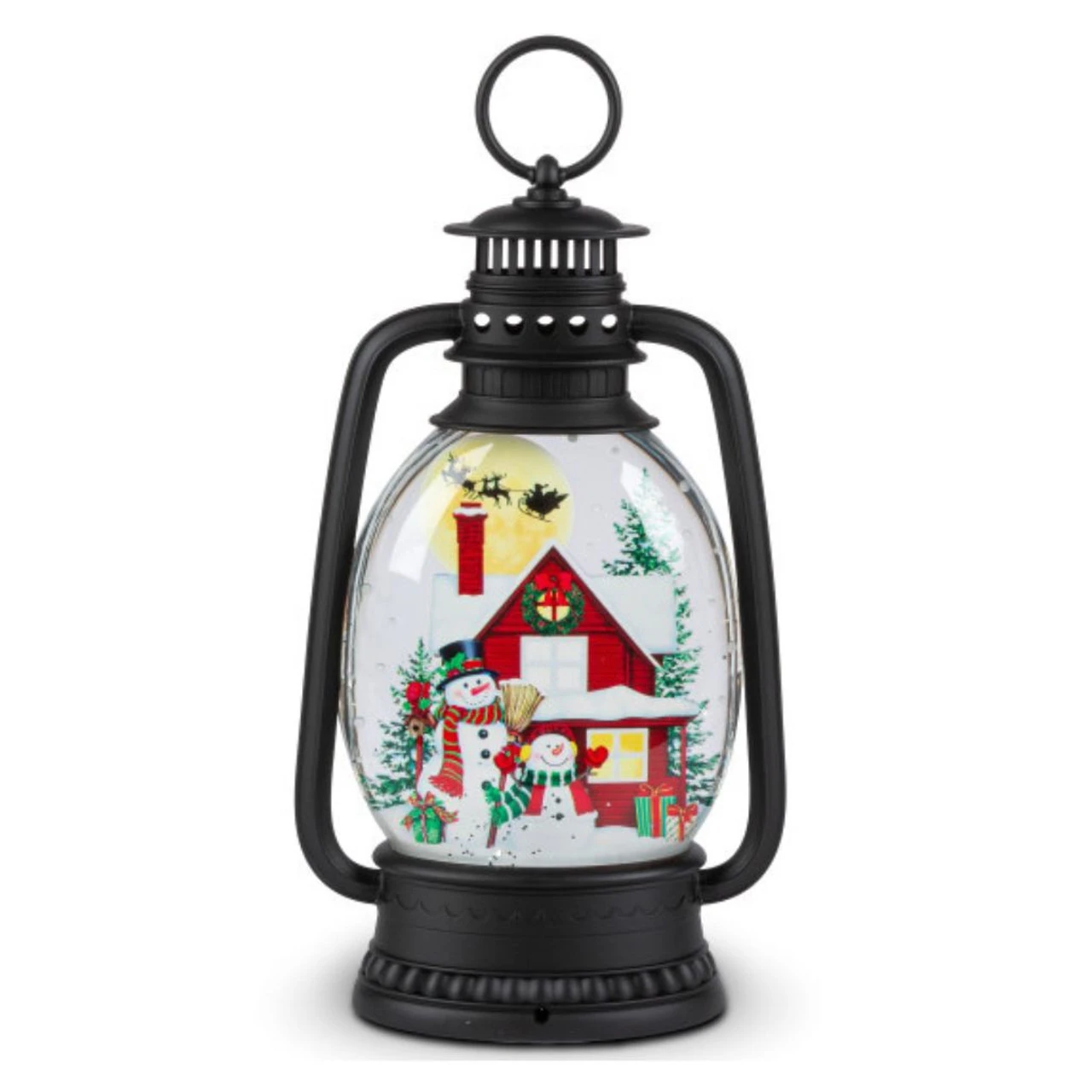 Celebrate two holidays with one stunning decoration! This Double-Sided Halloween and Christmas Water Globe Lantern features a spooky haunted house scene on one side and a festive snowman scene on the other.
