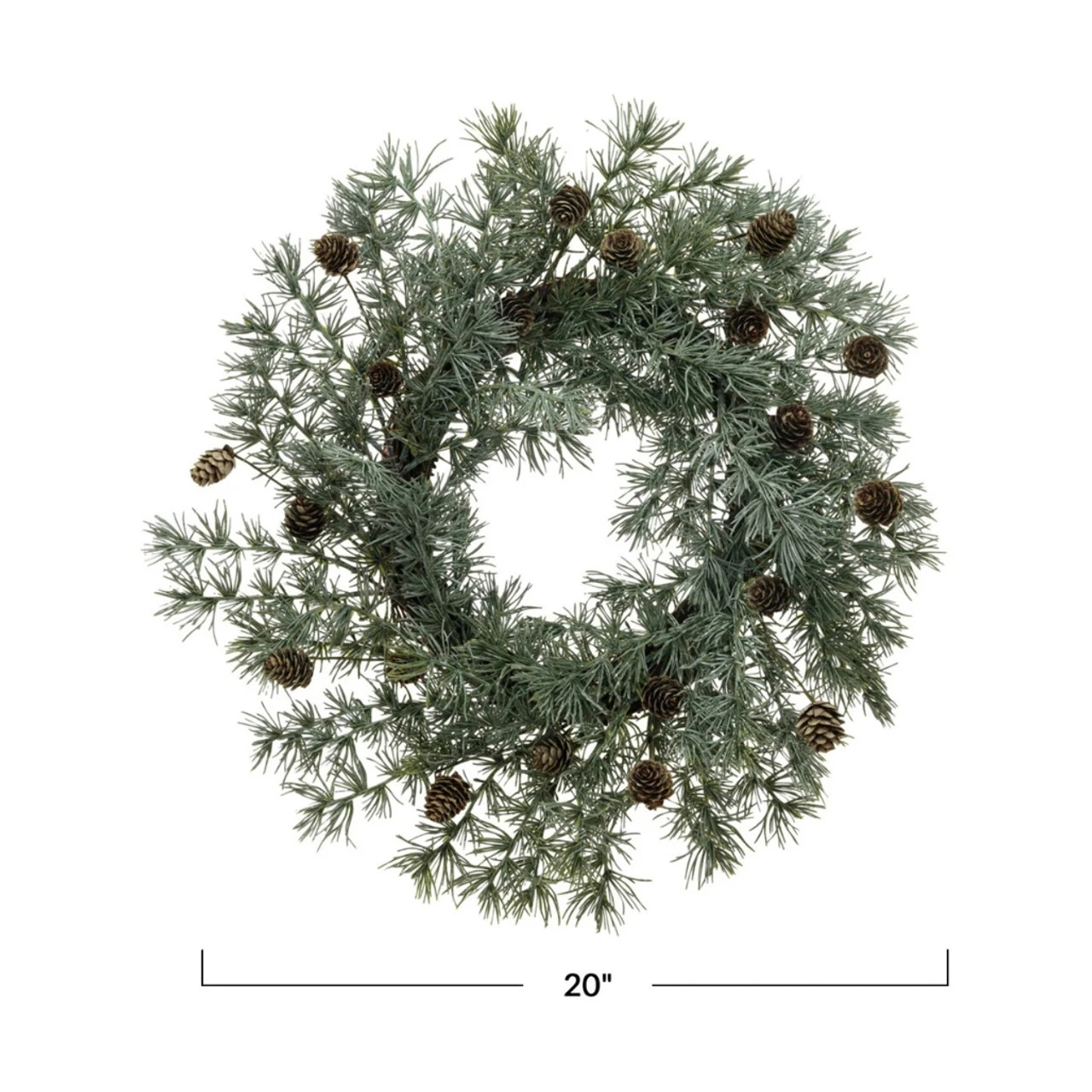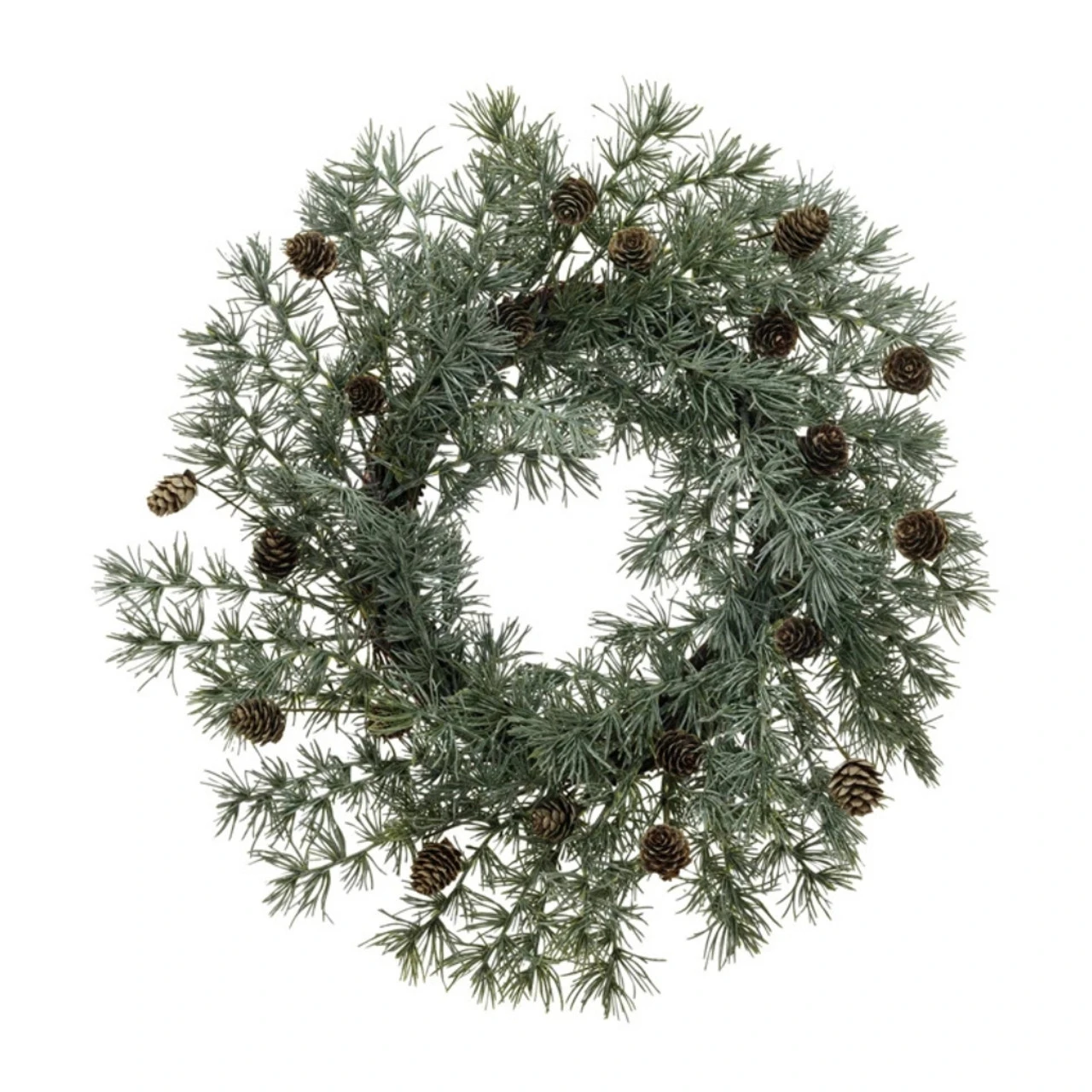 Faux Atlas Cedar Wreath With Natural Pinecones