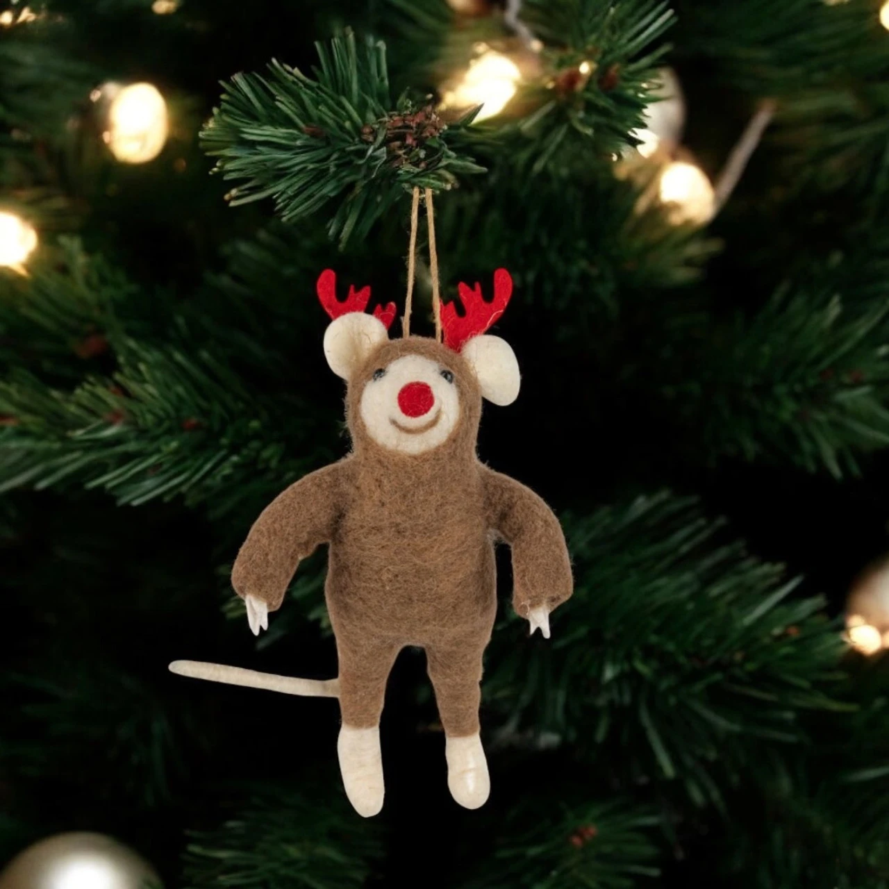 Add a whimsical touch to your holiday décor with this adorable Felt Reindeer with Red Antlers Ornament! Featuring bright red antlers and crafted from soft felt, this charming ornament will bring festive cheer to your tree, wreaths, or mantel.