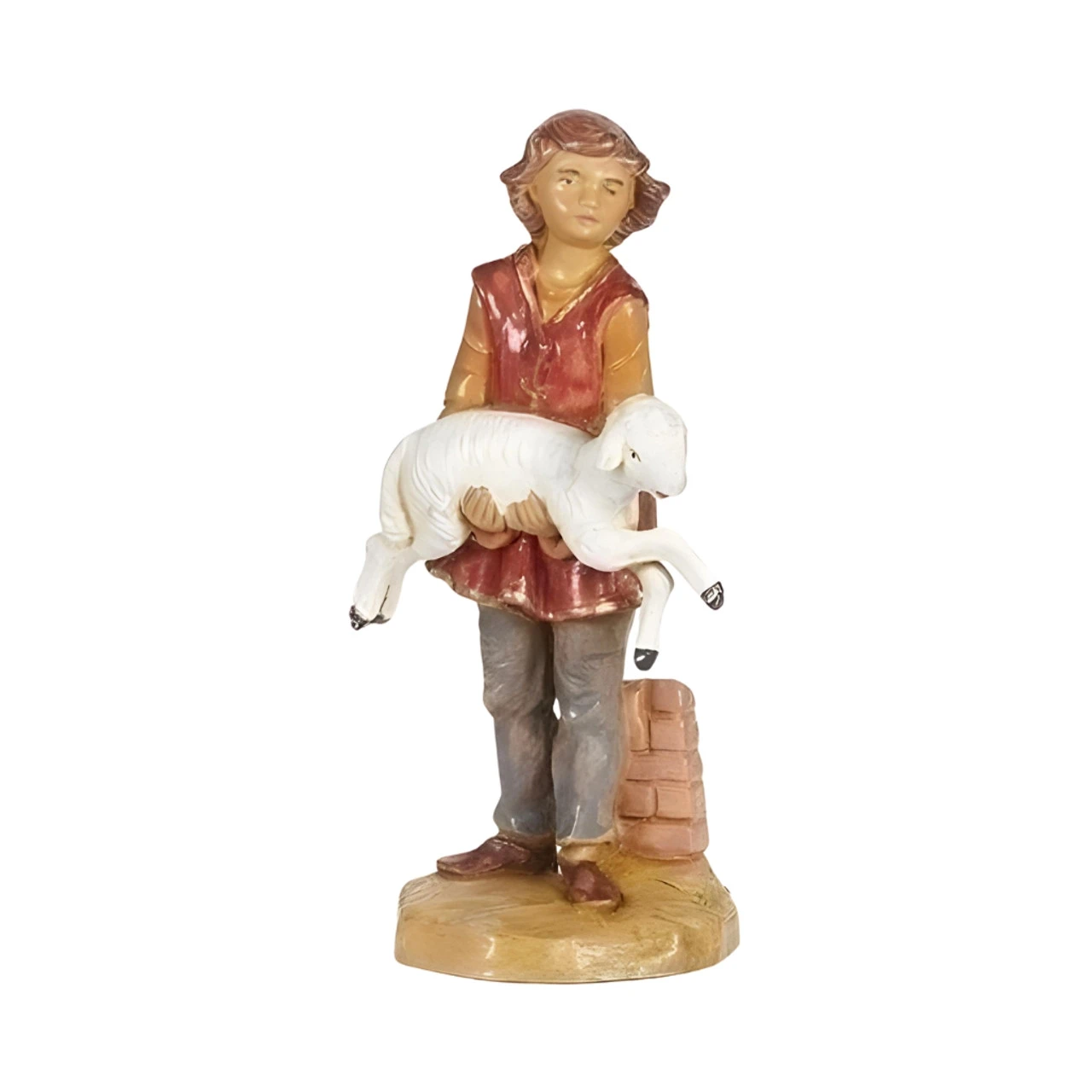Meet Ari, the caring young shepherd from the Fontanini Nativity collection. This 5-inch scale figurine, handmade in Italy, features Ari tenderly holding a sheep, symbolizing the gentle nature of the shepherds in the Nativity story.