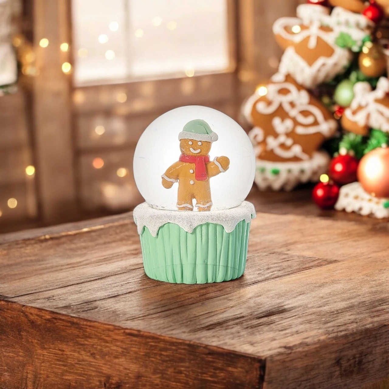 The base resembles a sweet green cupcake topped with glittering “frosting,” making it a perfect addition to your holiday dĂ©cor. A delightful gift for gingerbread lovers and collectors, this whimsical snow globe is the perfect way to sweeten up your Christmas display!