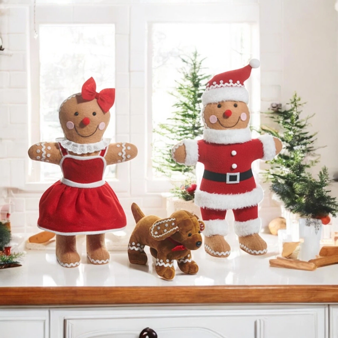 The soft, huggable design makes them perfect for display or as a cuddly Christmas gift. Whether sitting on a shelf or under the tree, these gingerbread friends will bring joy to your holiday season with their delightful charm and festive spirit.