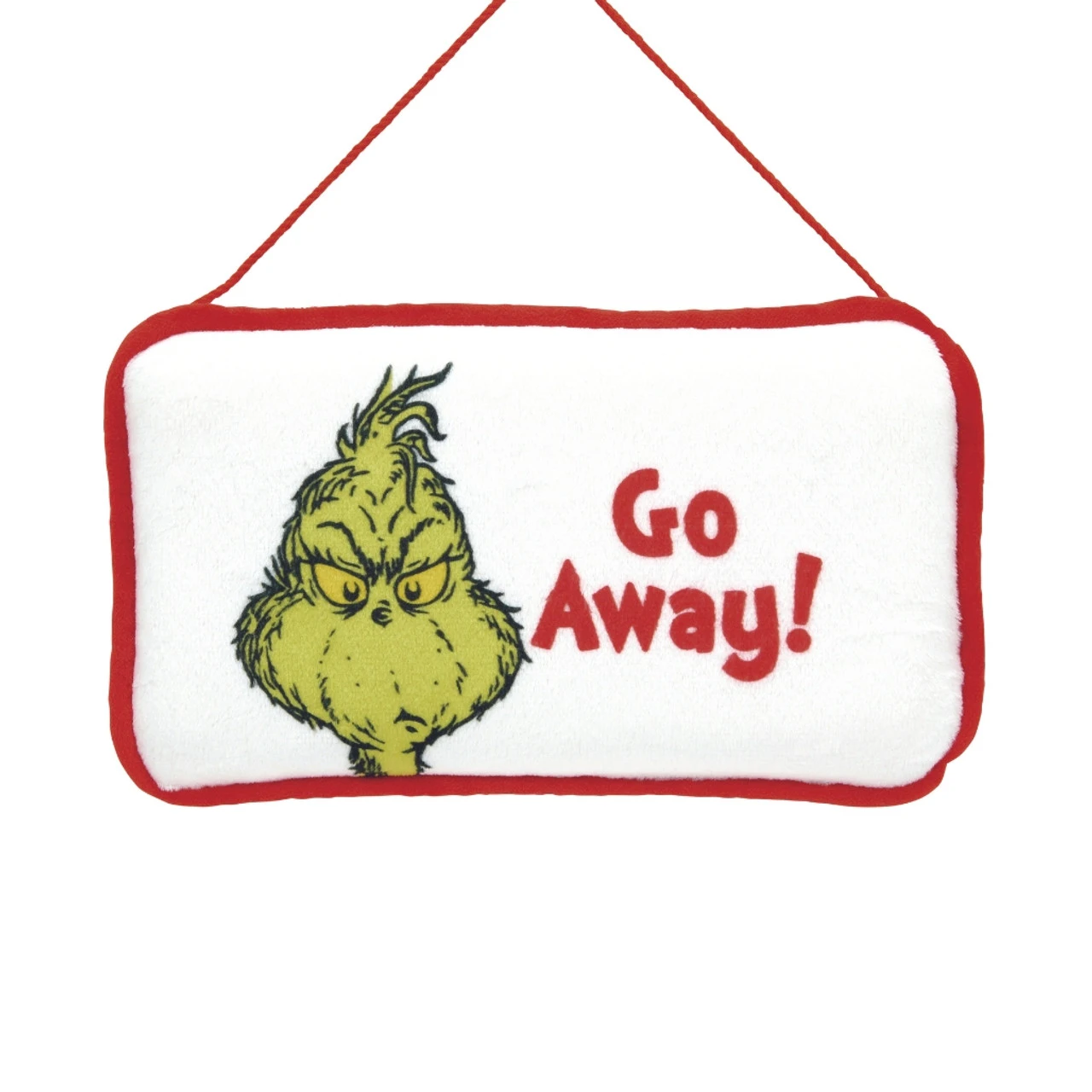 Need some peace and quiet? The Grinch Go Away Door Hanger is perfect for letting everyone know it’s time to leave you alone. Made from soft polyester and filling, this 4-inch by 7-inch door hanger features the classic Grinch face and a bold “Go Away!” message.
