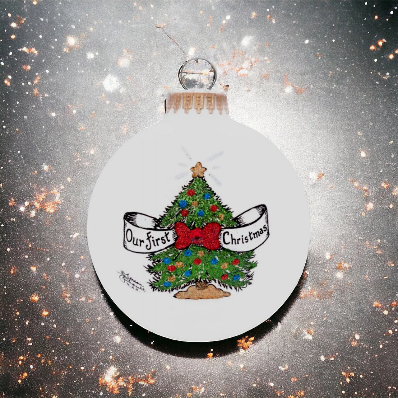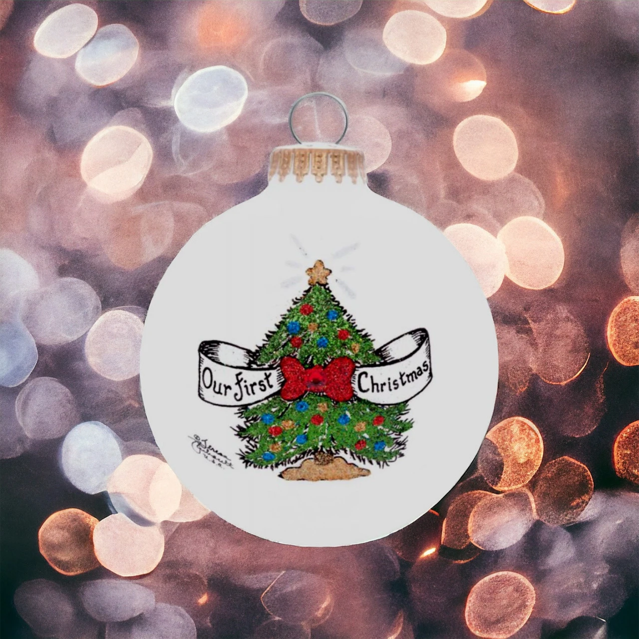 First Christmas Ornament by All American company Heart Gifts by Teresa, this Hand Painted Glass Ornament is especially designed for those very special first Christmas, and proudly source all decorative materials used from American companies – this wonderful glass ornament is inscribed with:
