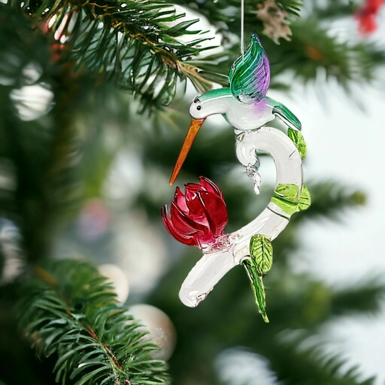 Add a touch of nature’s elegance to your holiday decor with this Hummingbird with Red Flower Ornament. This exquisite ornament features a delicate hummingbird sipping nectar from a vibrant red flower, crafted with intricate details and vibrant colors.