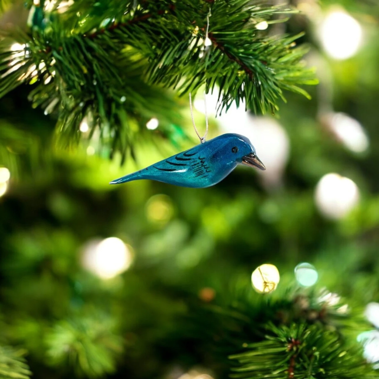 Brighten up your decor with this Hand-Carved Indigo Bunting Wood Bird Ornament. Painted in a striking shade of blue, this 4-inch ornament captures the natural beauty of the indigo bunting, making it perfect for bird enthusiasts.