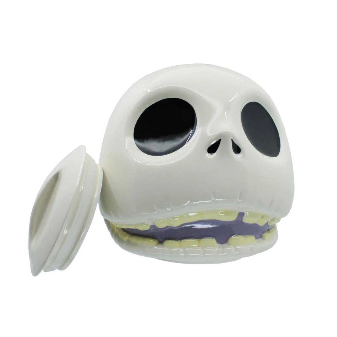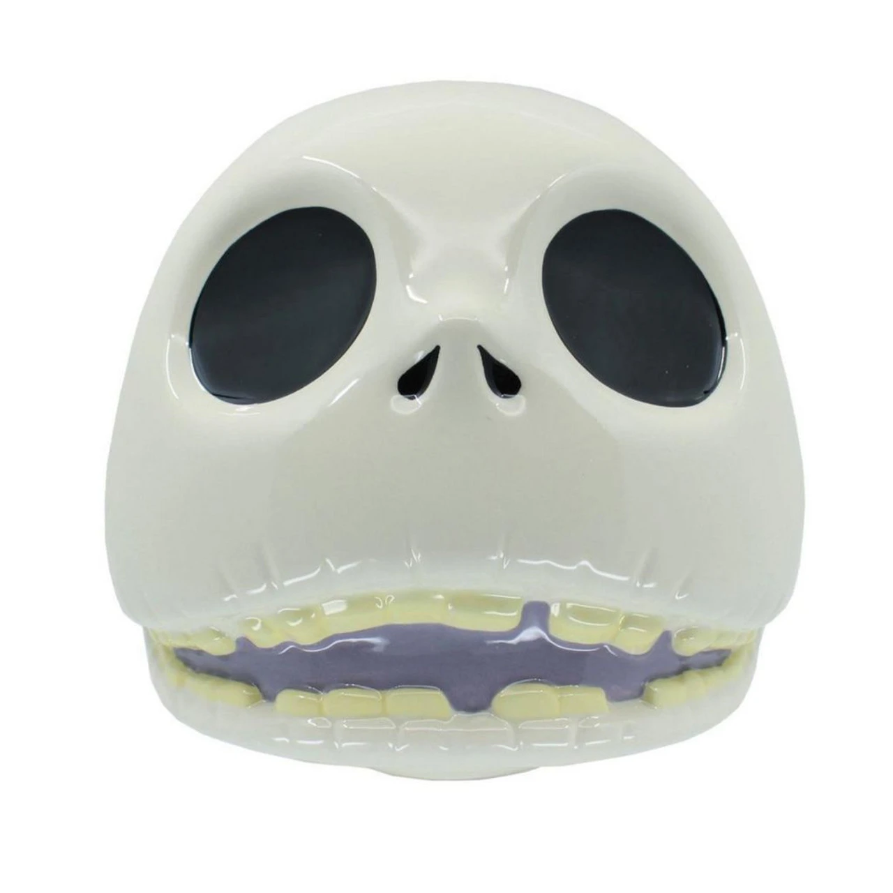 Keep your treats safe with a little help from the Pumpkin King! This Jack Skellington Sculpted Cookie Jar features Jack’s iconic grinning face in detailed ceramic. Perfect for fans of The Nightmare Before Christmas, it’s a spooky, fun addition to your kitchen or holiday decor.