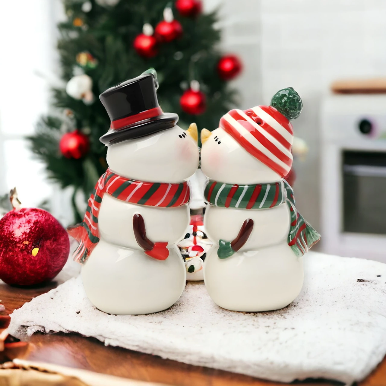 Add a sprinkle of winter romance with the Kissing Snowcouple Salt and Pepper Set. Magnetic, ceramic; a cozy addition for holiday dining.​​​