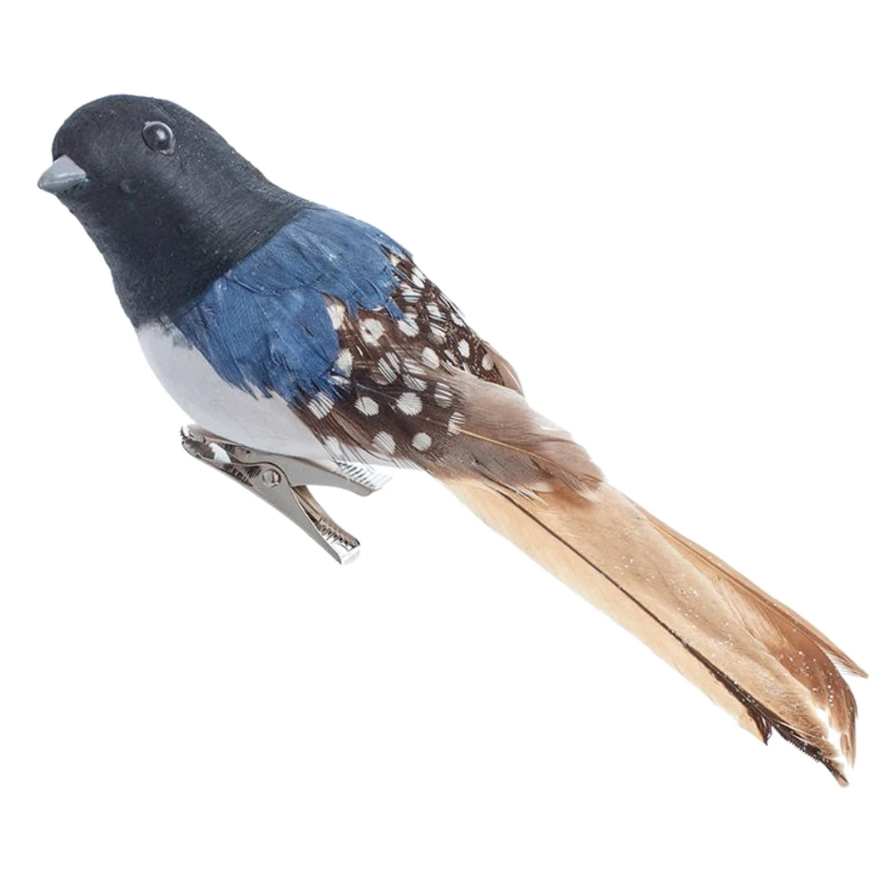 Introducing our stunning 7-inch Black and Blue Chickadee Clip-On Ornament, the perfect addition to your holiday or nature-inspired decor! Crafted from high-quality polyester and plastic materials, this ornament boasts a striking black and blue color palette and intricate details that bring this beautiful bird to life. The sturdy plastic clip makes it easy to attach the ornament to wreaths, garlands, trees, or any other surface you choose, ensuring that it stays securely in place.