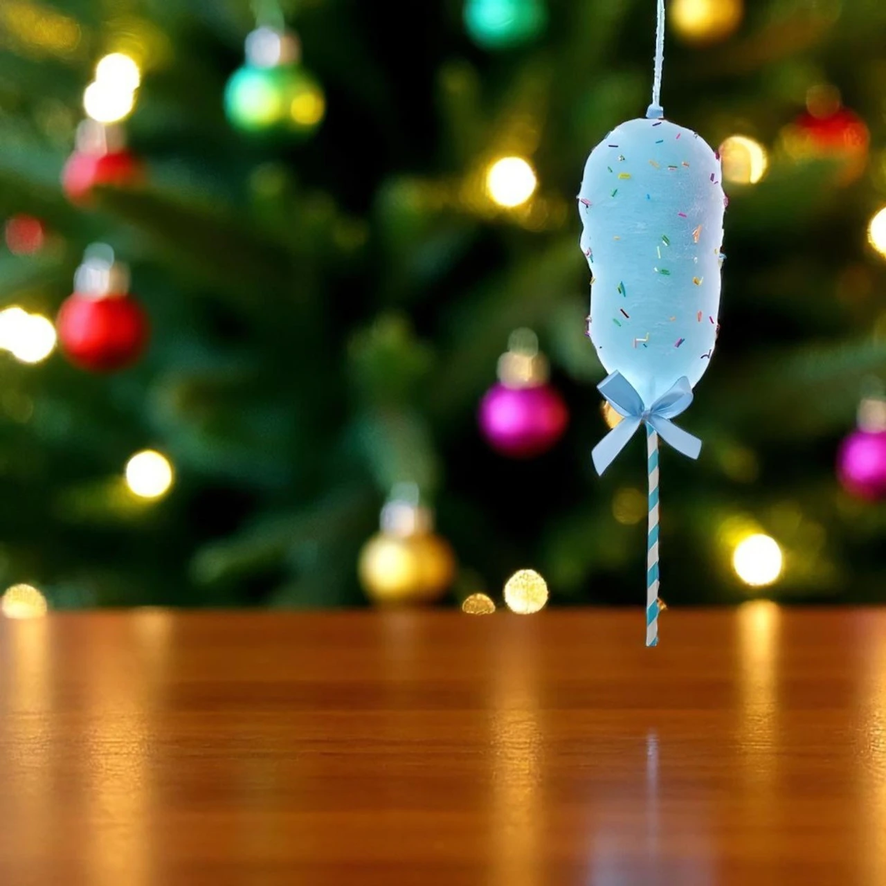 Mounted on a striped stick, it’s perfect for whimsical trees, candy-themed displays, or festive centerpieces. Lightweight and cheerful, it’s a delightful nod to childhood treats and sugary memories that will brighten your holiday season.