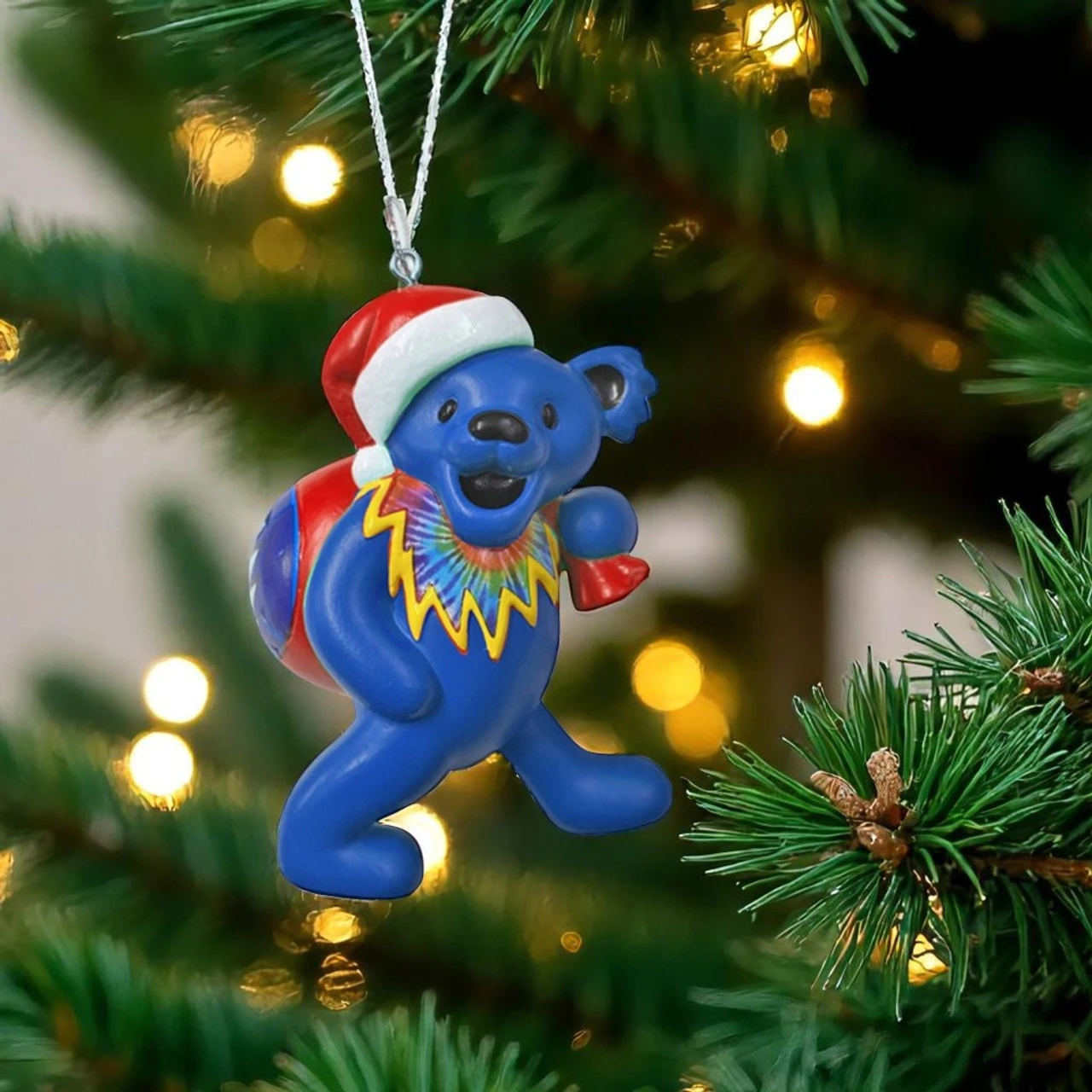 Celebrate the season with a psychedelic twist! This 3.5″ Blue Grateful Dead Bear with Bag Ornament by Kurt Adler features the iconic dancing bear in a red Santa hat, rainbow collar, and festive gift sack.