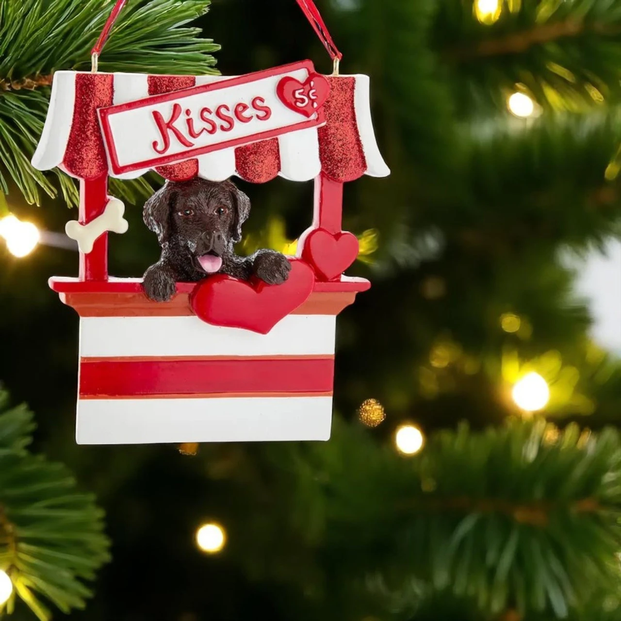 Say hello to sweet puppy love with this Brown Labrador Kissing Booth Ornament! Crafted from durable resin and measuring 4 inches tall, this festive pup is ready to charm. With a big red heart and candy-striped booth, it’s perfect for celebrating your beloved Lab.