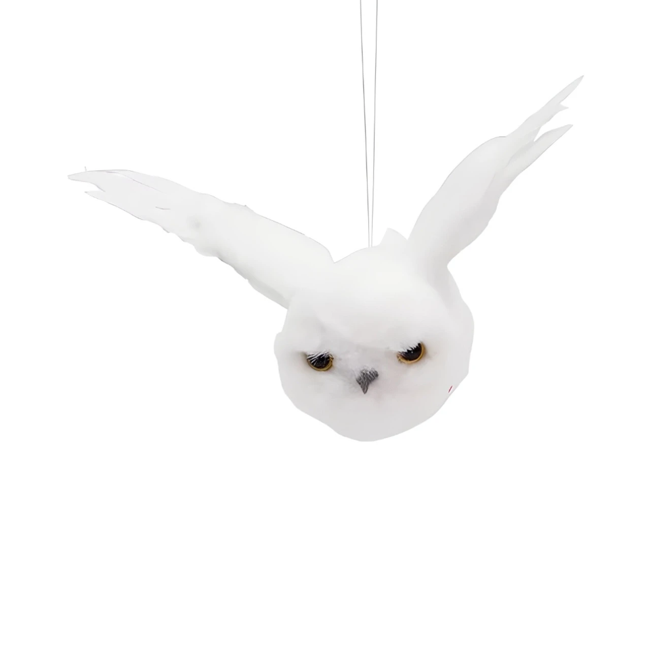Adorn your tree with the wintry wonder of Kurt Adler’s 8″ Flying White Owl Ornament. From the delicate feathers to the intense gaze, this lifelike owl brings a snowy enchantment indoors. Made from styrofoam and polyester, it has the realistic charm to captivate any holiday guest.
