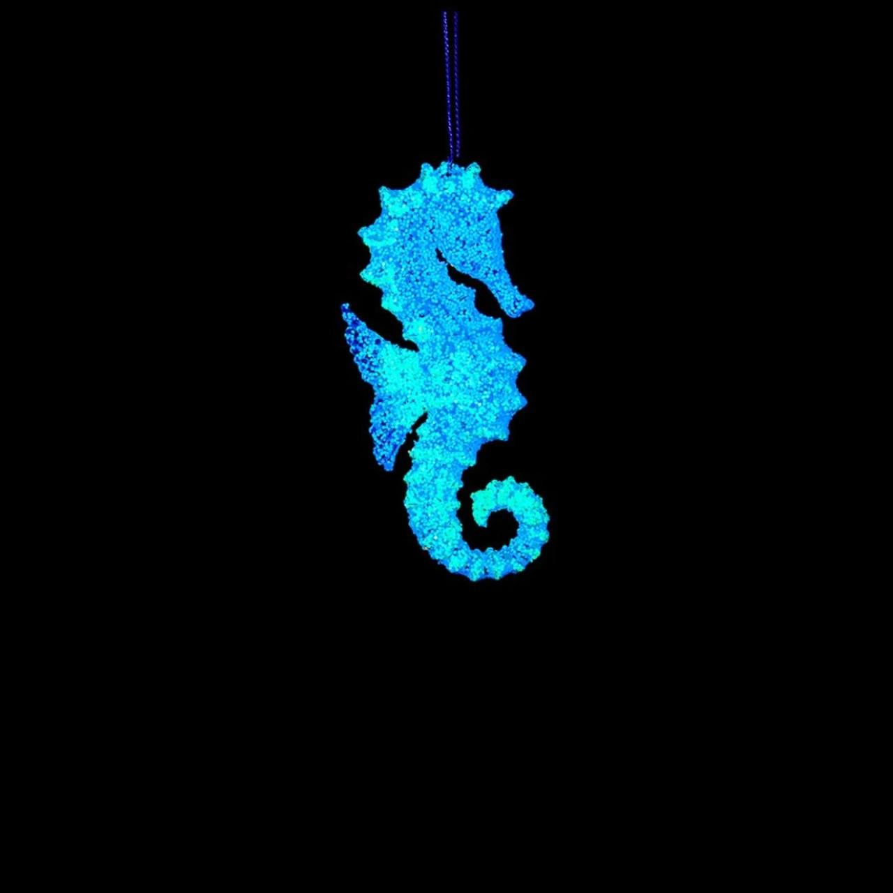 Make waves on your Christmas tree with this glowing blue seahorse ornament from Kurt Adler! Measuring 5.5 inches tall, it’s made from textured plastic and sprinkled with sparkling green and yellow accents.