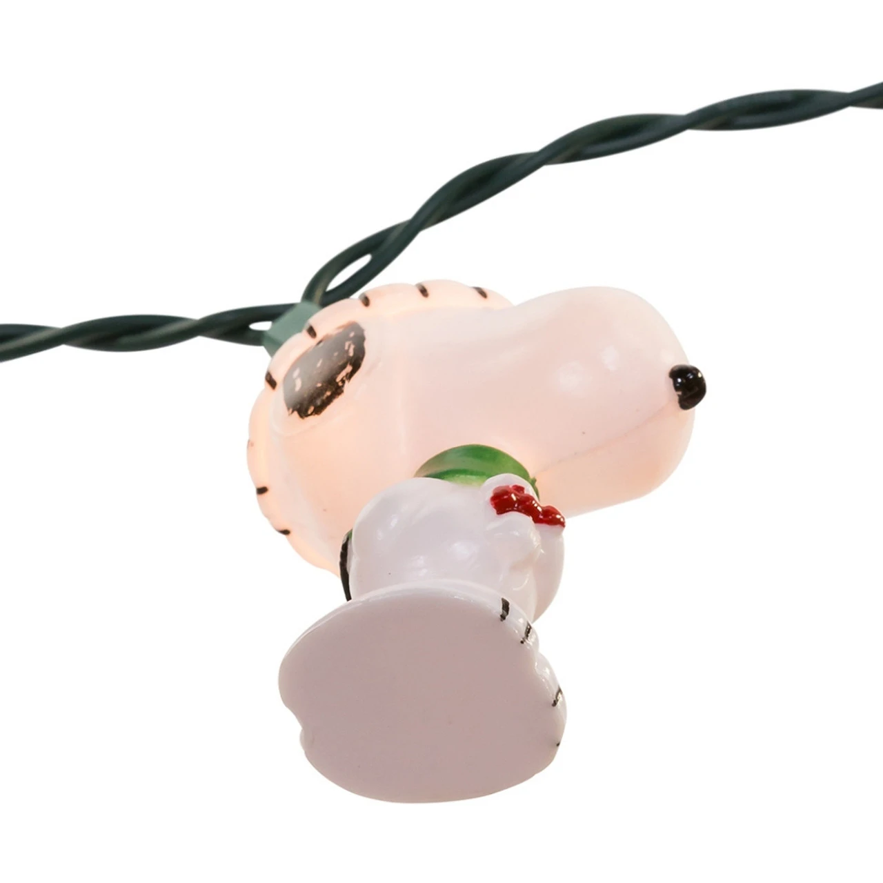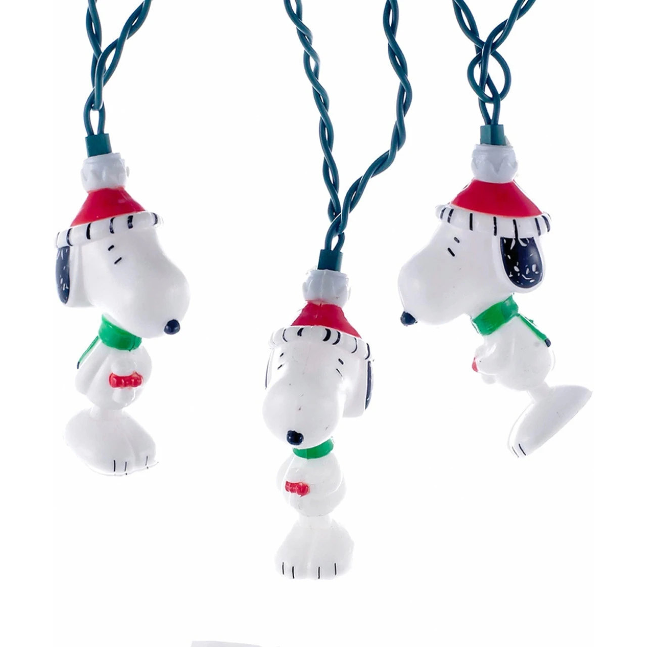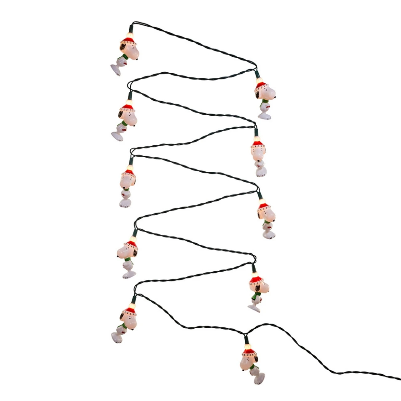 Bring a dash of Peanuts charm to your holidays with this 9′ Snoopy Light Set from Kurt Adler. Each of the ten lights features Snoopy wearing a Santa hat and green scarf, holding a red-ribbon-wrapped bone. These officially licensed lights use UL-approved clear incandescent bulbs and are perfect for both indoor and outdoor displays.