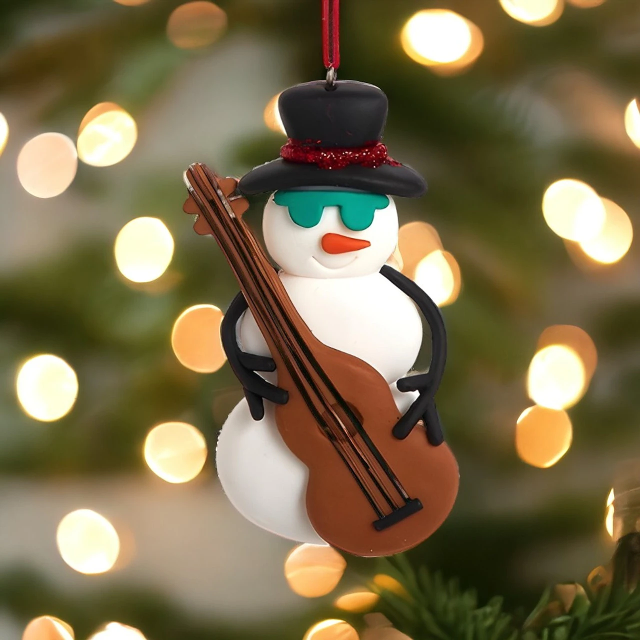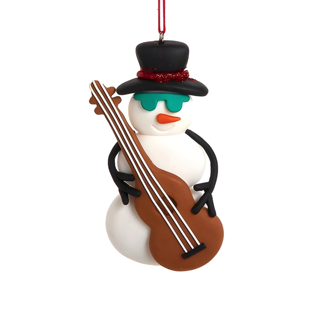 Strum into the festive season with Kurt Adler’s Bass-Playing Snowman Ornament. This 4.5″ tall snowman, made of claydough, sports cool shades, a top hat, and a sparkling red scarf. With his bass guitar in hand, he’s ready to jazz up your tree.