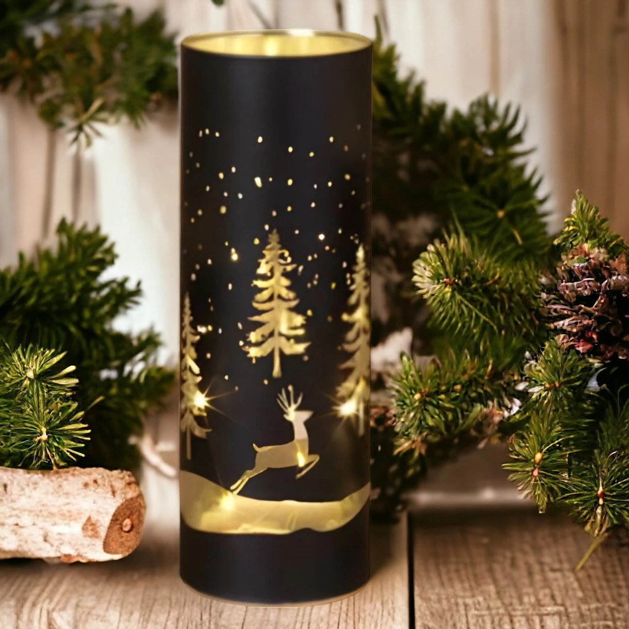Create a cozy nook with our Large Enchanted Forest Glass Luminary Light. Each luminary features a tranquil forest and a serene deer in silhouette, with specks of light mimicking a gentle snowfall.