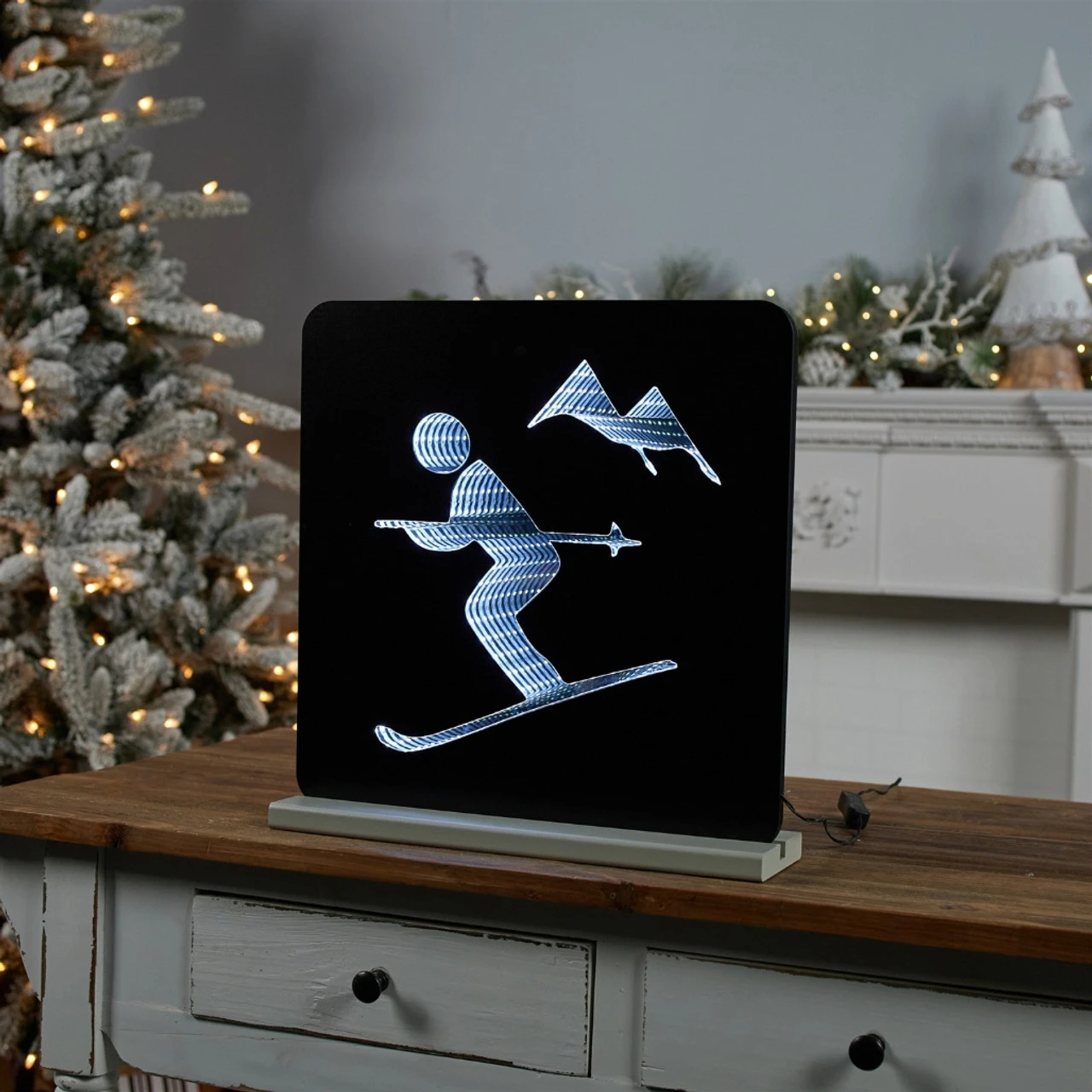 Bring the excitement of the slopes to your home with this LED Skier Plaque. Measuring 15.5 inches square, this sleek acrylic plaque lights up with a mesmerizing skier design, making it perfect for any winter sports enthusiast.