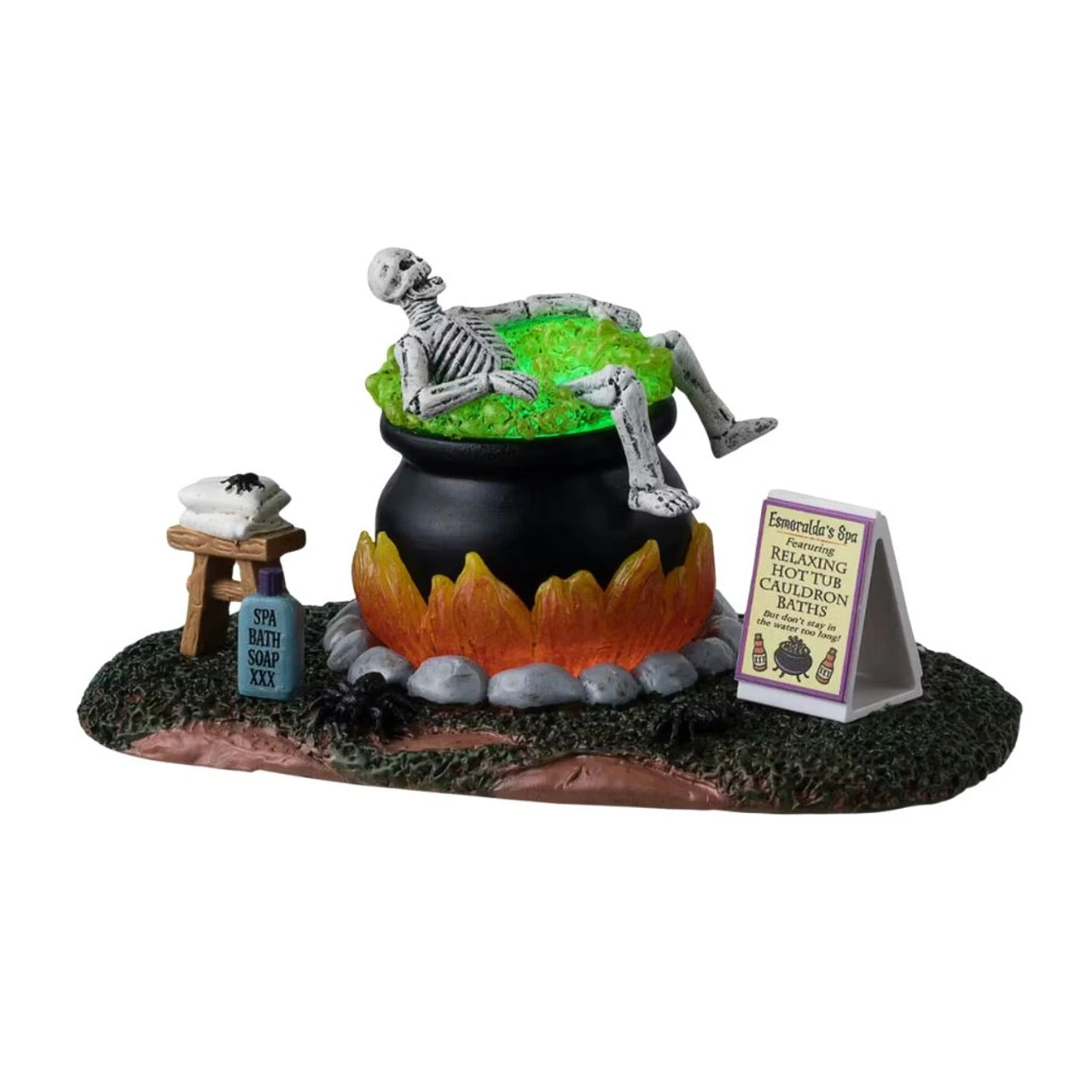 Transform your Halloween display with Lemax Spooky Town’s Nothing Like a Hot Bath! Feeling worn out or fatigued? Esmeralda’s Spa is here to boil all your troubles away! Submerge yourself in a unique cauldron bath filled with hauntingly green potions over flickering flames.
