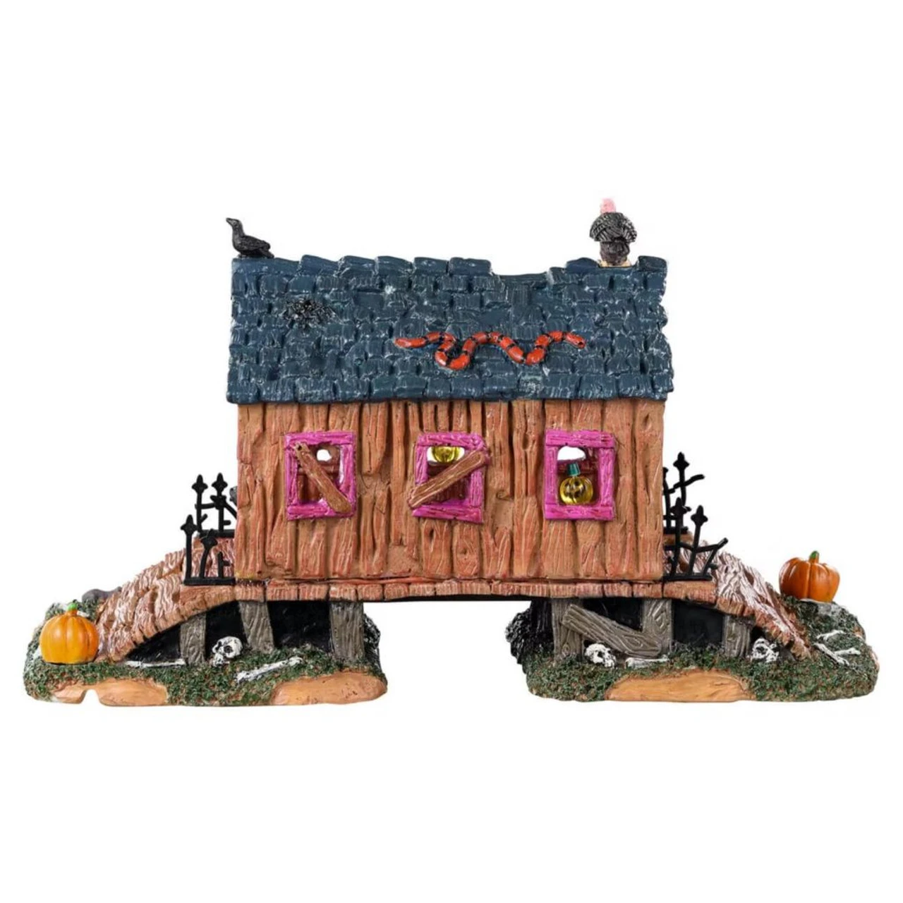The sign warns travelers to enter at their own risk but many take the chance and cross the river here rather than trekking further upstream. What happens to them we will never know since no one has come out on the other side yet. The most convenient spot to cross the river in Spooky Town is also the scariest. A large sign warns travelers to enter at their own risk but some take a chance on this creepy covered bridge. What happens inside we never will know, no one has ever appeared on the other side after entering. As if the buzzard, crows, snakes, and skulls weren’t enough of a warning there are still those foolhardy enough to try the easy way across rather than heading further upstream to the safer crossing.