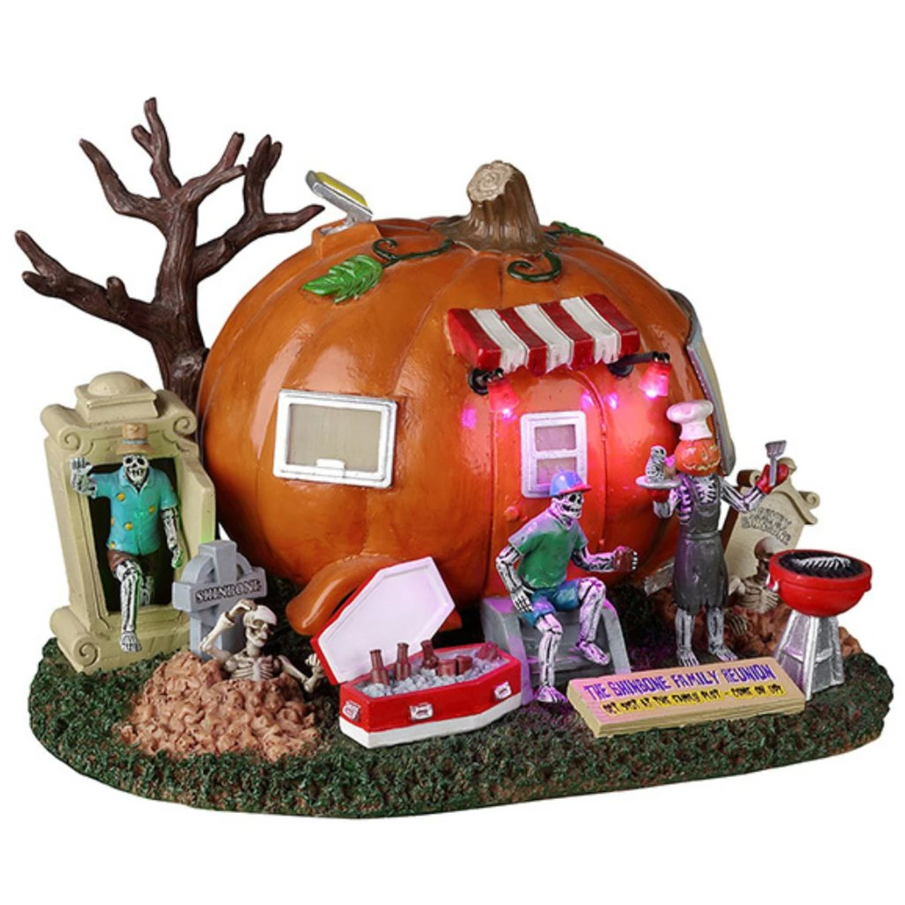 There’s nothing like a good family reunion, even one from beyond the grave! Join the party at the Shinbone Family Reunion, grab a cool one from the coffin ice box and let loose with an uncle from way, way back! With relatives popping out of every grave and equally dead fish being cooked on the grill, this is definitely a party not to be missed. And what better location than a fully equipped pumpkin trailer?