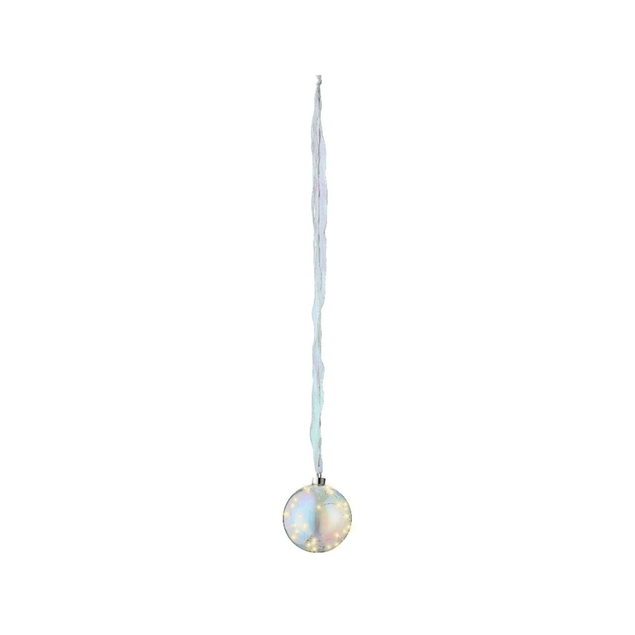 Add a touch of elegance to your indoor space with Lumineo’s 30 Micro-LED Warm White Iris Hanging Decoration Light. This beautiful 5.5-inch decoration features delicate silver wire and 30 warm white LEDs.