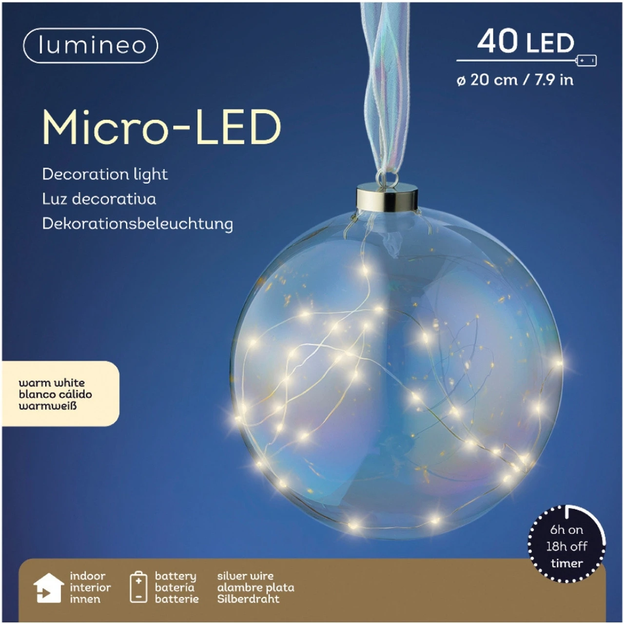 Illuminate your indoor space with Lumineo’s 40 Micro-LED Warm White Iris Hanging Decoration Light. This stunning 7.9-inch decoration features a delicate silver wire and 40 warm white LEDs.