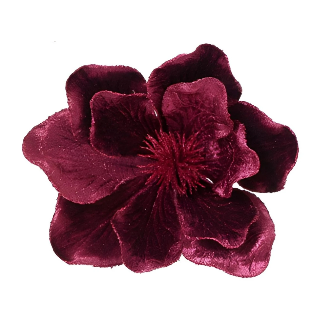 Add a touch of elegance to your holiday decor with the Maroon Velvet Magnolia Clip. This beautiful floral clip measures 6.3 inches tall and 10.6 inches wide, perfect for adding a rich, luxurious feel to your Christmas tree, wreaths, swags, and other festive displays.