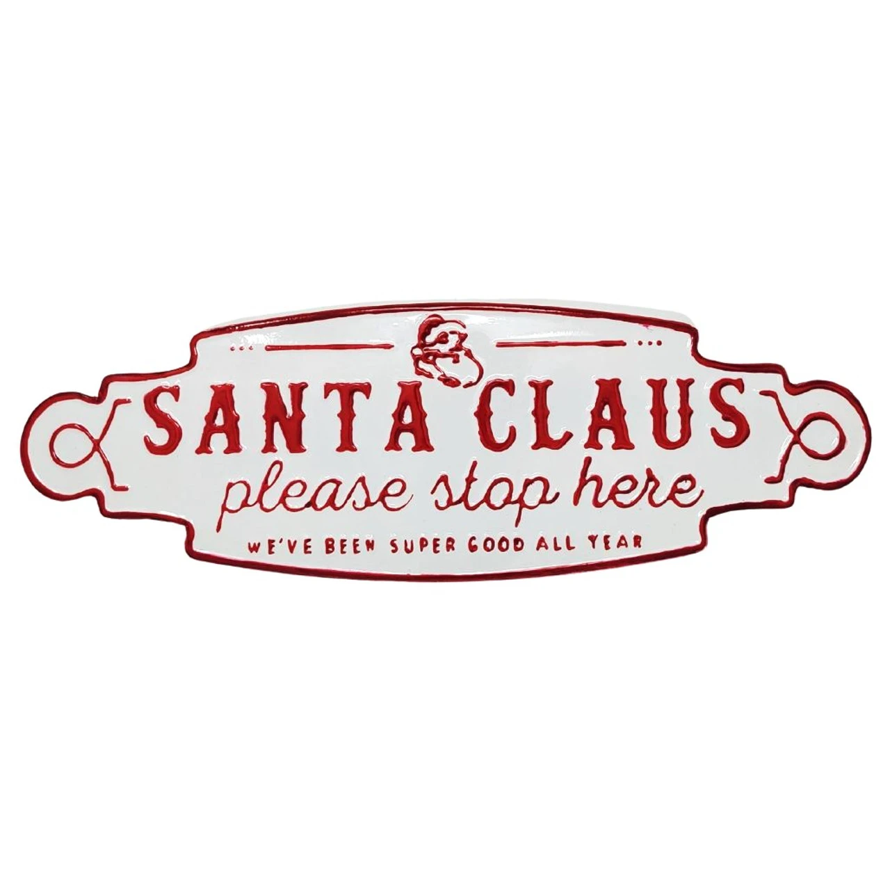 Make sure Santa doesn’t miss your house with this fun metal sign.