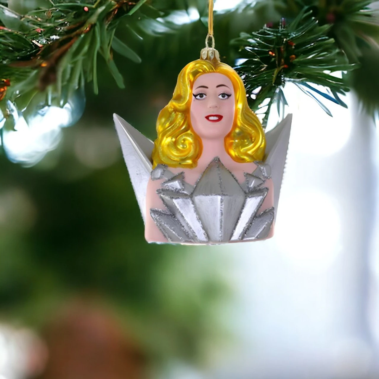This hand-painted glass ornament celebrates iconic diva moments in a striking pose that’s pure drama.