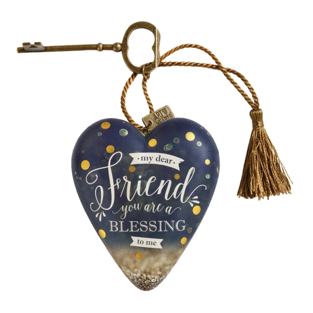 Celebrate the luminous bond of friendship with the My Dear Friend Art Heart Christmas Sculpture. This enchanting violet heart, speckled with joyful yellow circles and a tranquil gray base, carries the tender sentiment, “My dear friend, you are a blessing to me.” A standout piece in the Art Hearts Collection, its unique design and heartfelt message embody the spirit of giving, perfect for expressing appreciation this holiday season. An uplifting presence in any home or space.