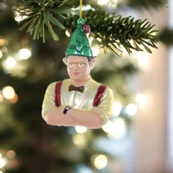 Felt Elf Mouse In Red Suit Holding Christmas Lights Ornament