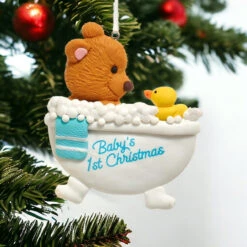 Nola Watkins Blue Baby’s First Christmas Hand Painted Ornament
