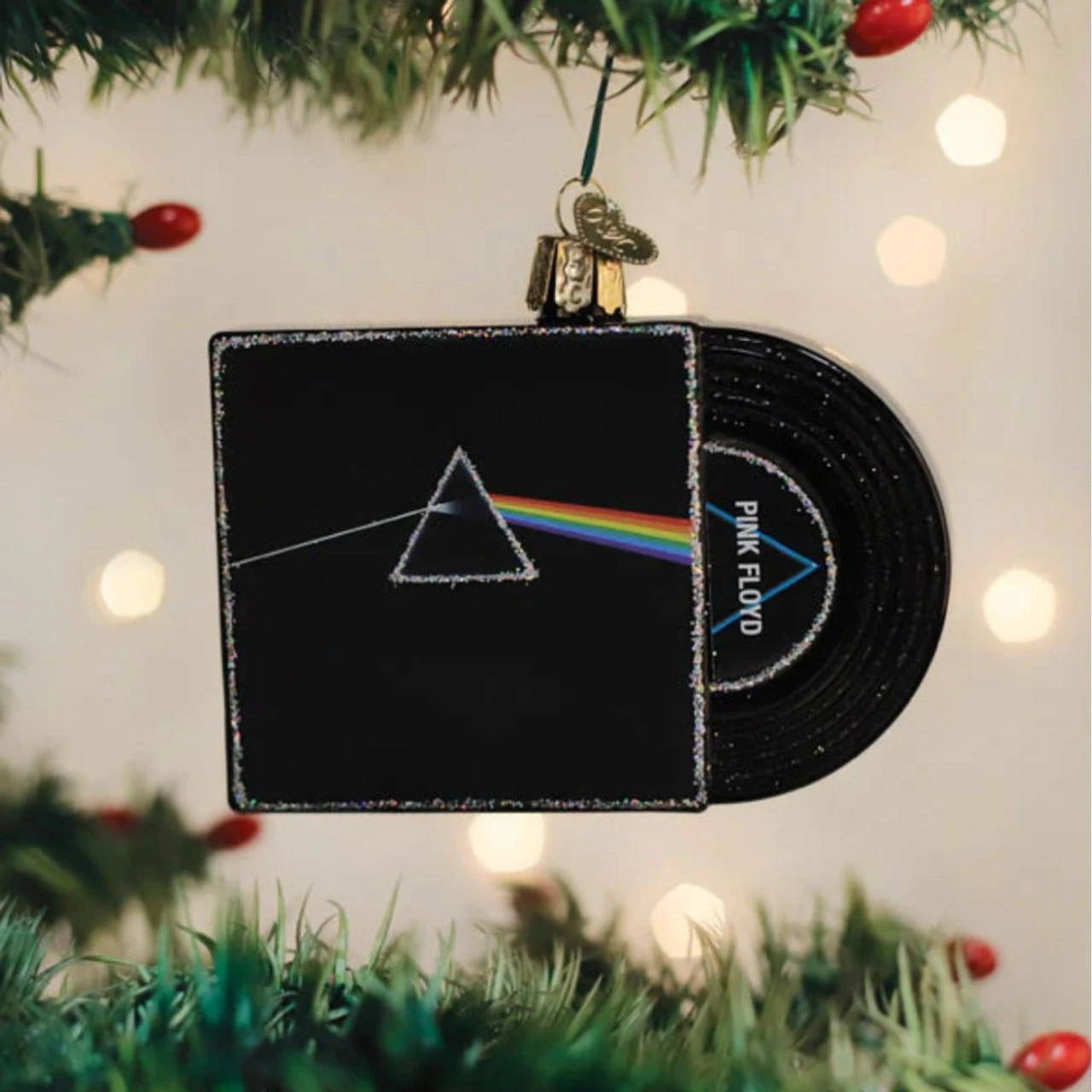 Celebrate one of the greatest rock albums ever with this Pink Floyd Dark Side of the Moon Album Ornament by Old World Christmas! Featuring the iconic prism and rainbow artwork along with a mini vinyl record, this hand-blown glass ornament is a must-have for Pink Floyd fans.