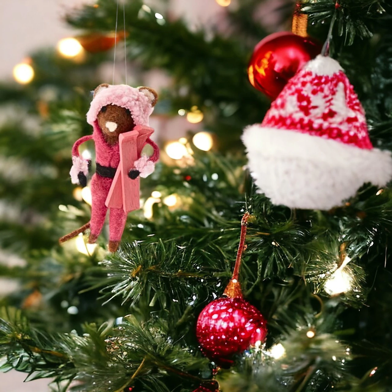 Perfect for adding a playful touch to your Christmas tree, this mouse ornament brings a hint of winter sports charm to your festive celebrations with a cute and cozy look.