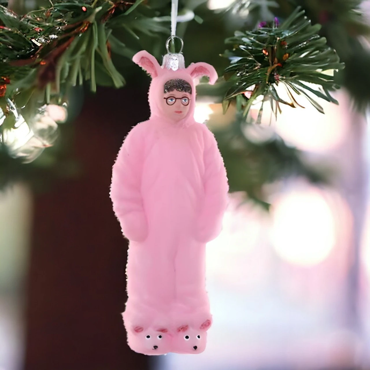 Add a pop of pink and a dash of nostalgia to your tree with our Ralphie Pink Bunny Suit Ornament. This adorable piece captures Ralphie’s less-than-thrilled expression in his infamous suit.