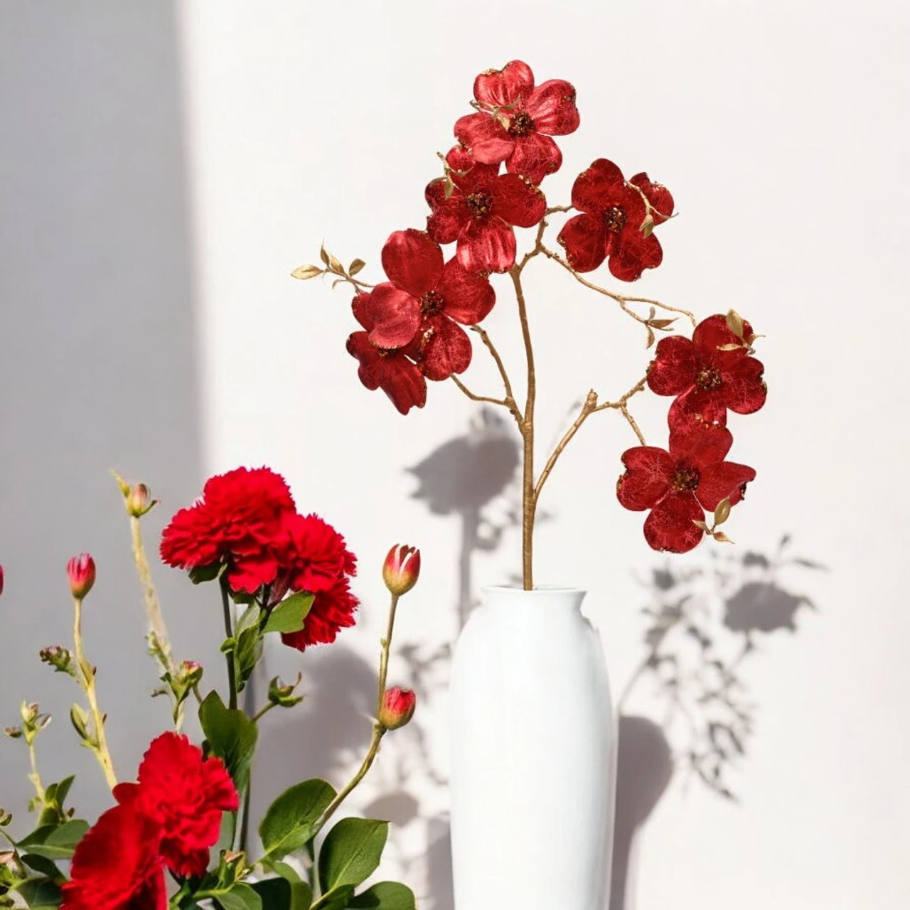 Add a splash of vibrant color to your holiday decor with the Red Flower Pick. Standing tall at 35.4 inches and 9.5 inches wide, this elegant pick features beautiful red flowers made from high-quality polyester.