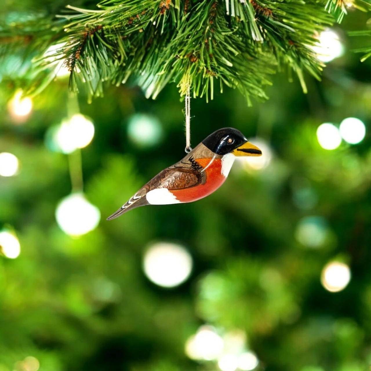 Celebrate the beauty of spring all year with our Hand-Carved Robin Wood Bird Ornament. This 4-inch ornament captures the rich colors of a robin, complete with its iconic red breast and realistic detailing.
