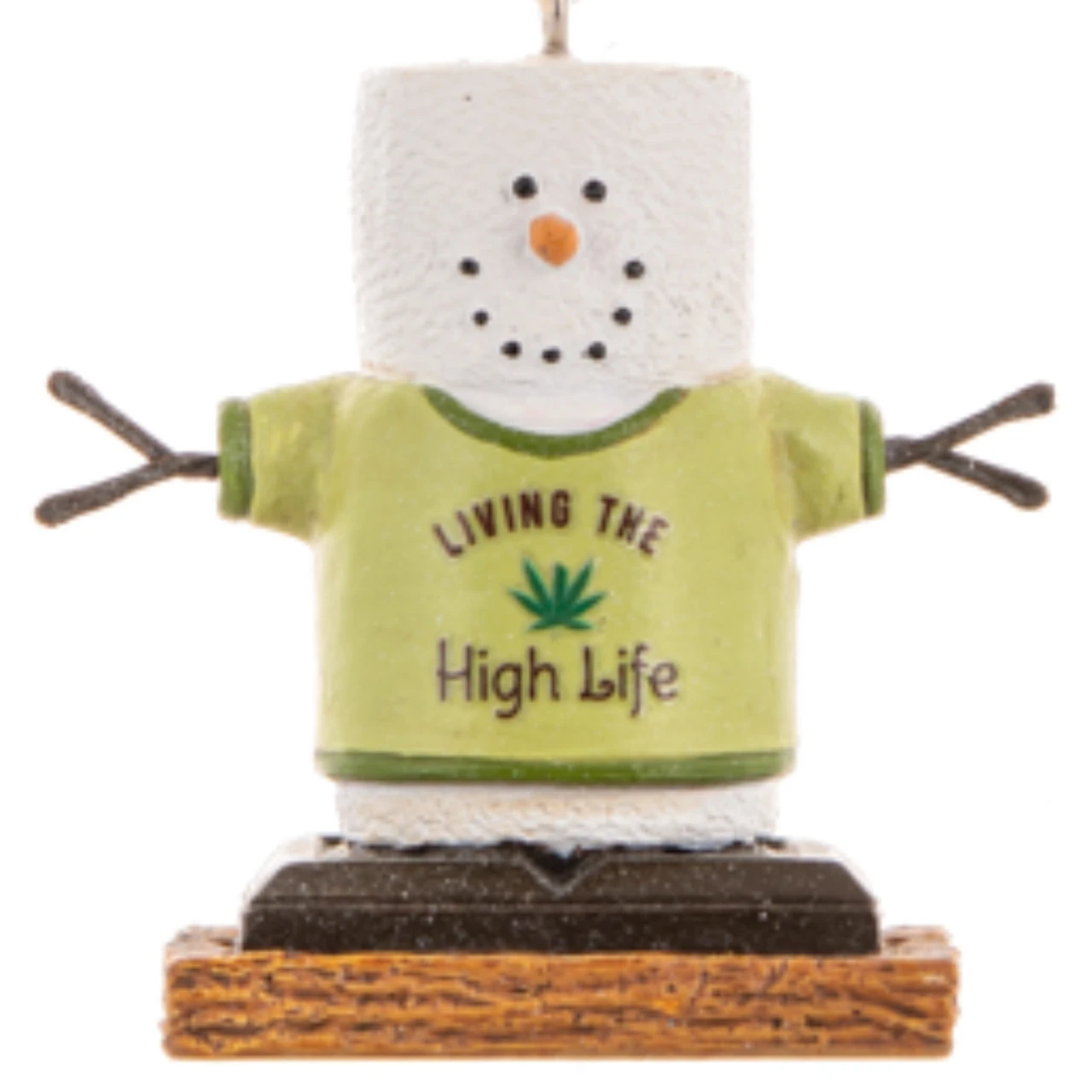 Introducing our adorable 2.5-inch S’mores Living High Ornament, a whimsical addition to your holiday decorations. This delightful ornament features a s’more character wearing a tee shirt with the sentiment “Living The High Life.” With intricate detailing and hand-painted accents, this ornament brings a touch of charm and humor to your Christmas tree. It hangs from a sturdy brown string, making it easy to display. Crafted with high-quality materials, this ornament is built to last and can be enjoyed year after year. It also makes a perfect gift for those who appreciate a bit of lighthearted fun during the holiday season. Bring a smile to your face and spread joy with the 2.5-inch S’mores Living High Ornament. Order yours today and add a delightful touch to your festive decor!