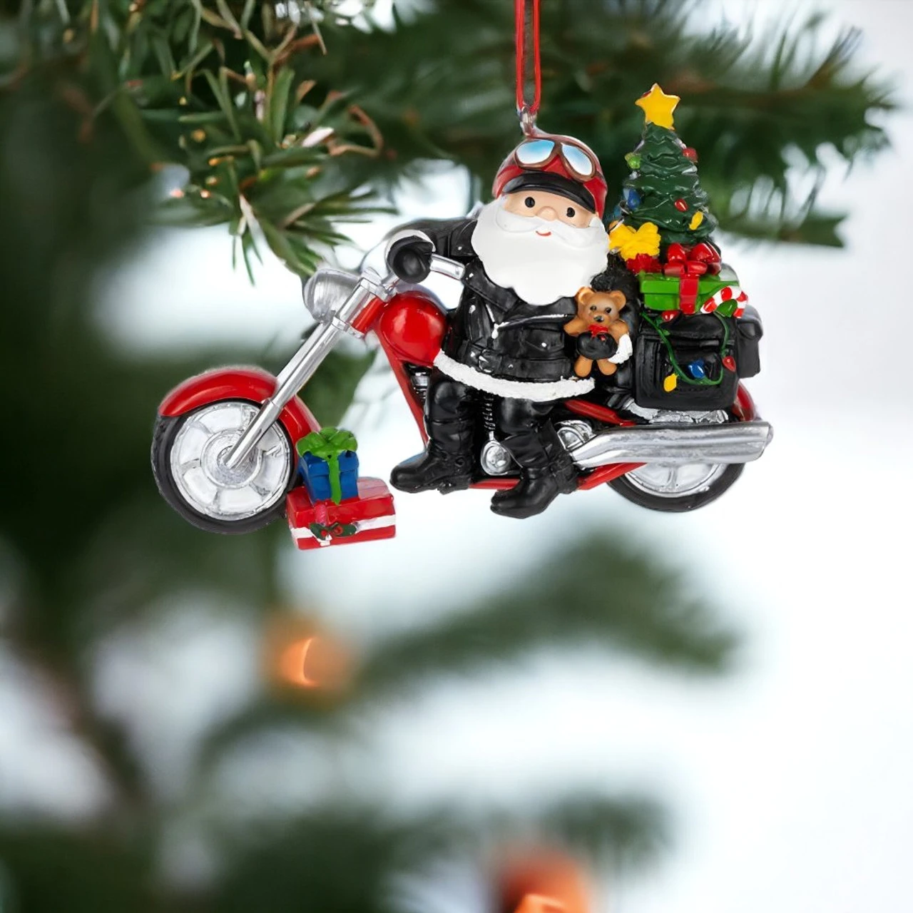 Rev up your Christmas spirit with the “Santa on Motorcycle Chopper Christmas Ornament” by Ganz! This playful ornament captures Santa in full biker gear, riding a shiny red motorcycle.