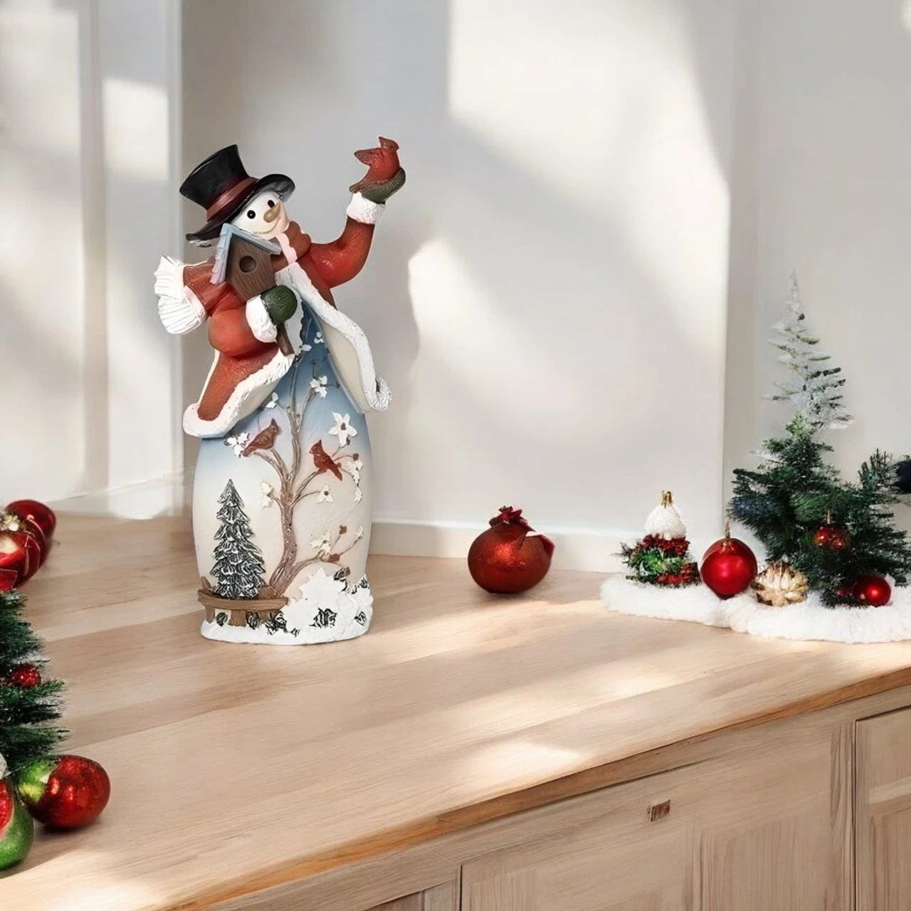 Holding a birdhouse, making this figurine a heartwarming addition to any Christmas display. Perfect for adding a whimsical, cozy feel to your home.