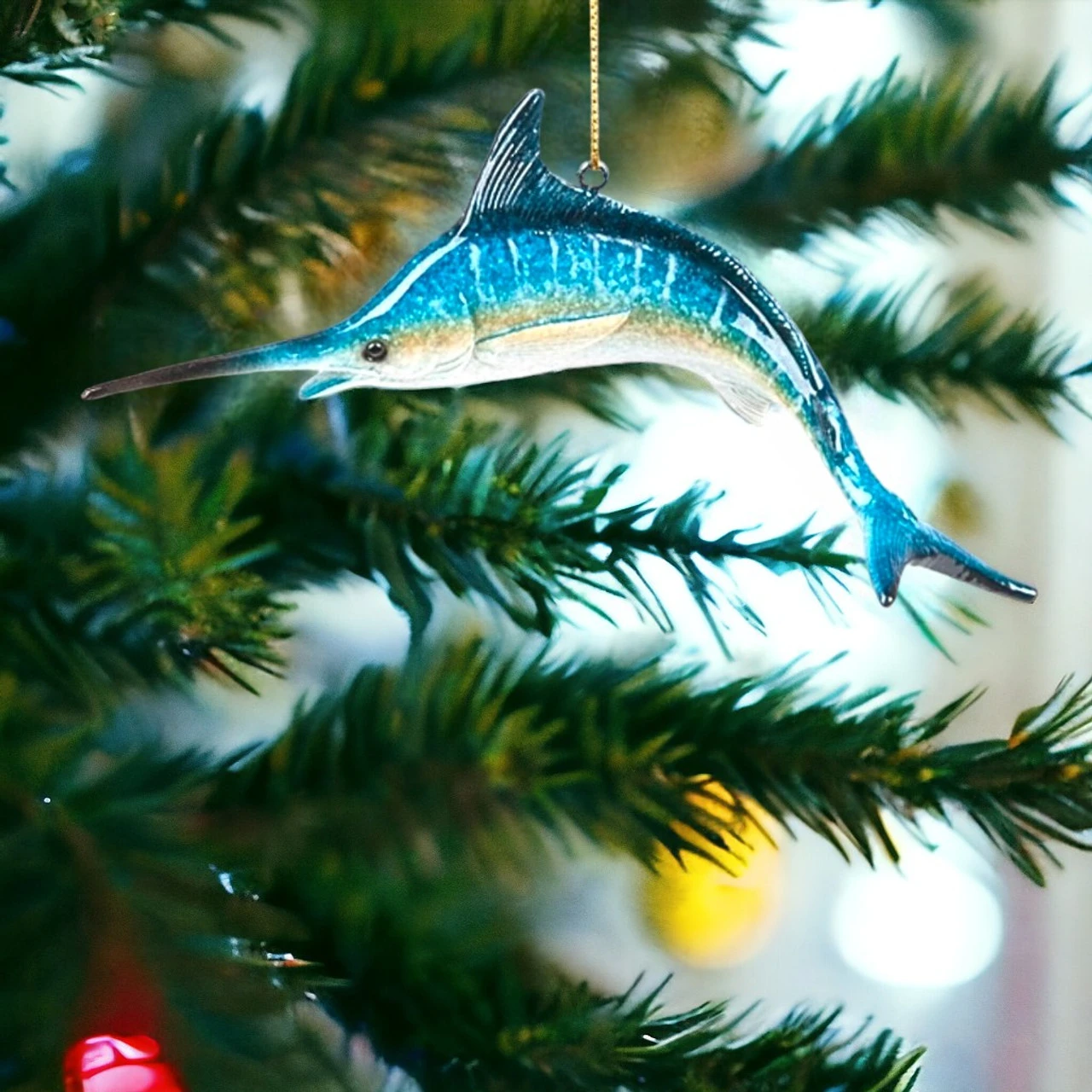 Dive into the holiday spirit with this Swordfish Christmas Ornament. This beautifully crafted ornament features a vibrant swordfish design, perfect for adding a touch of oceanic charm to your Christmas tree.